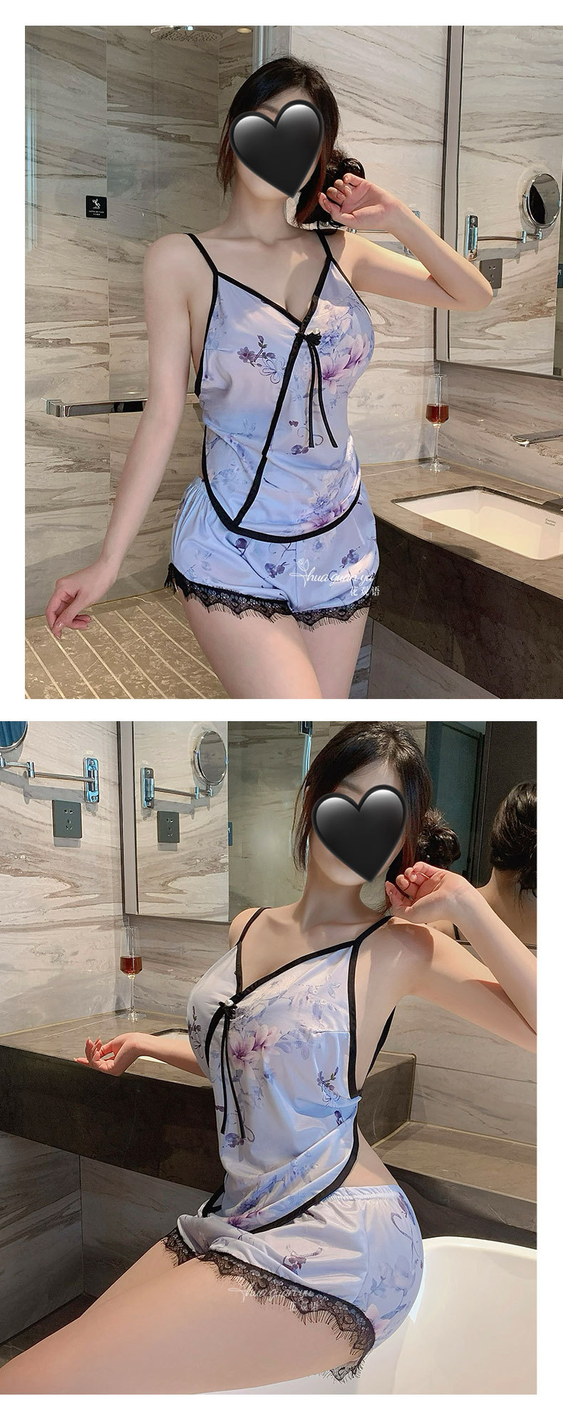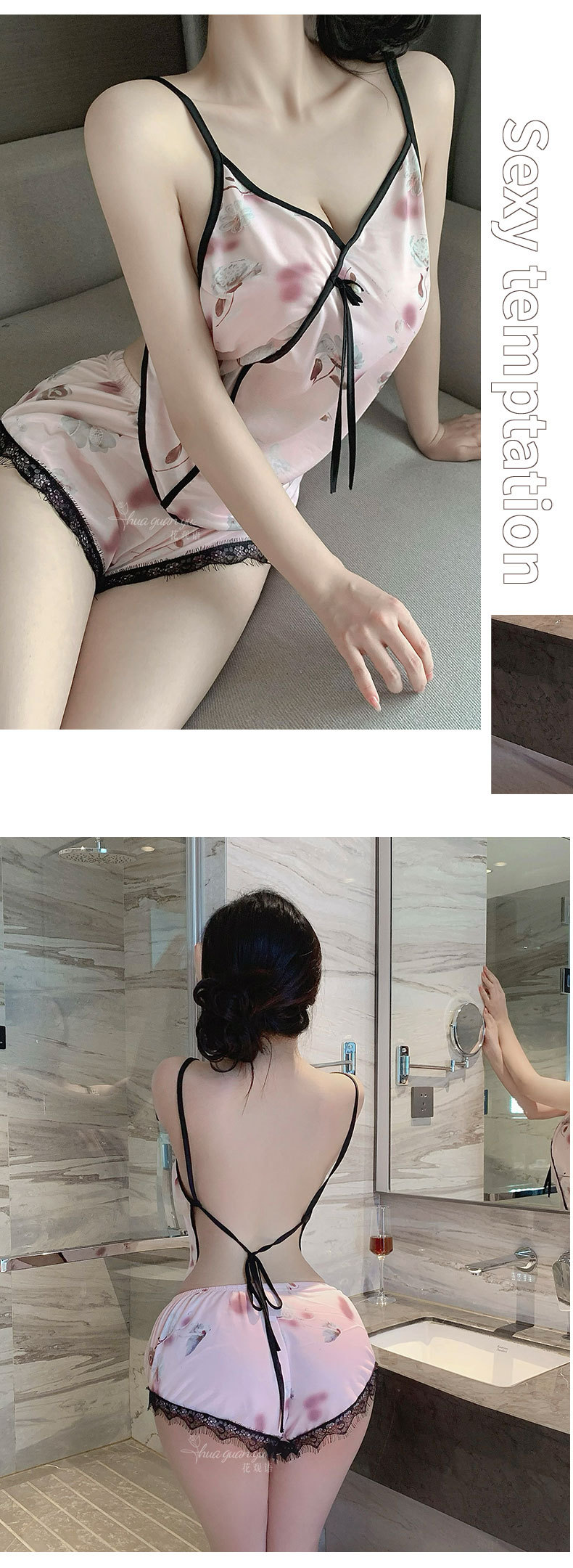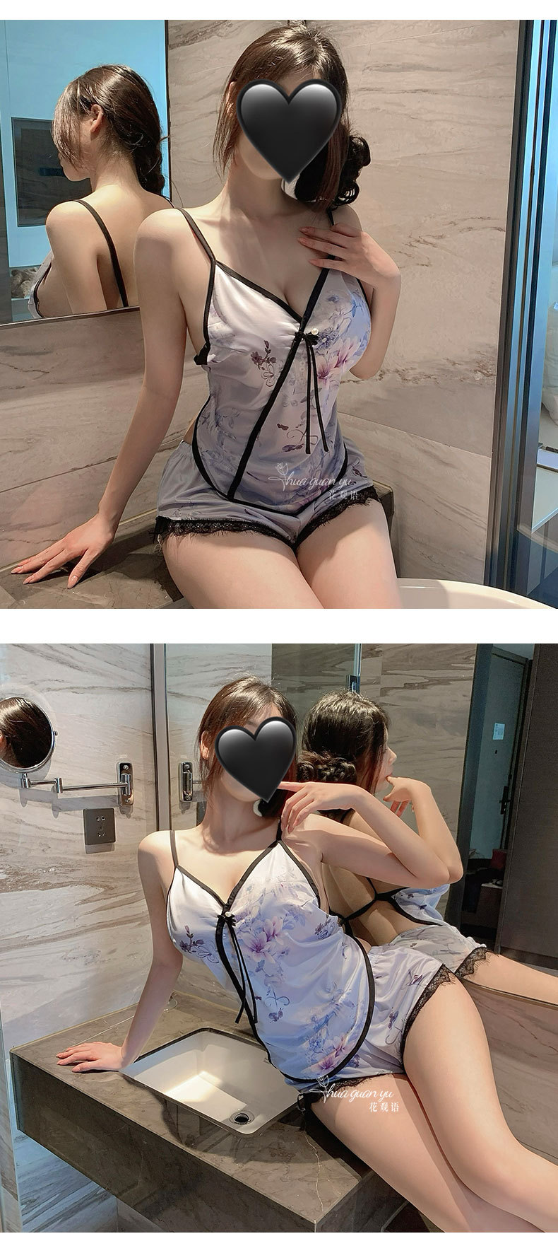 2025 새로운 여름 스타일 아이스 실크 뱃주머니 잠옷 여성 성인 섹시한 서스펜더 백리스 속옷 얇은스토어 가기