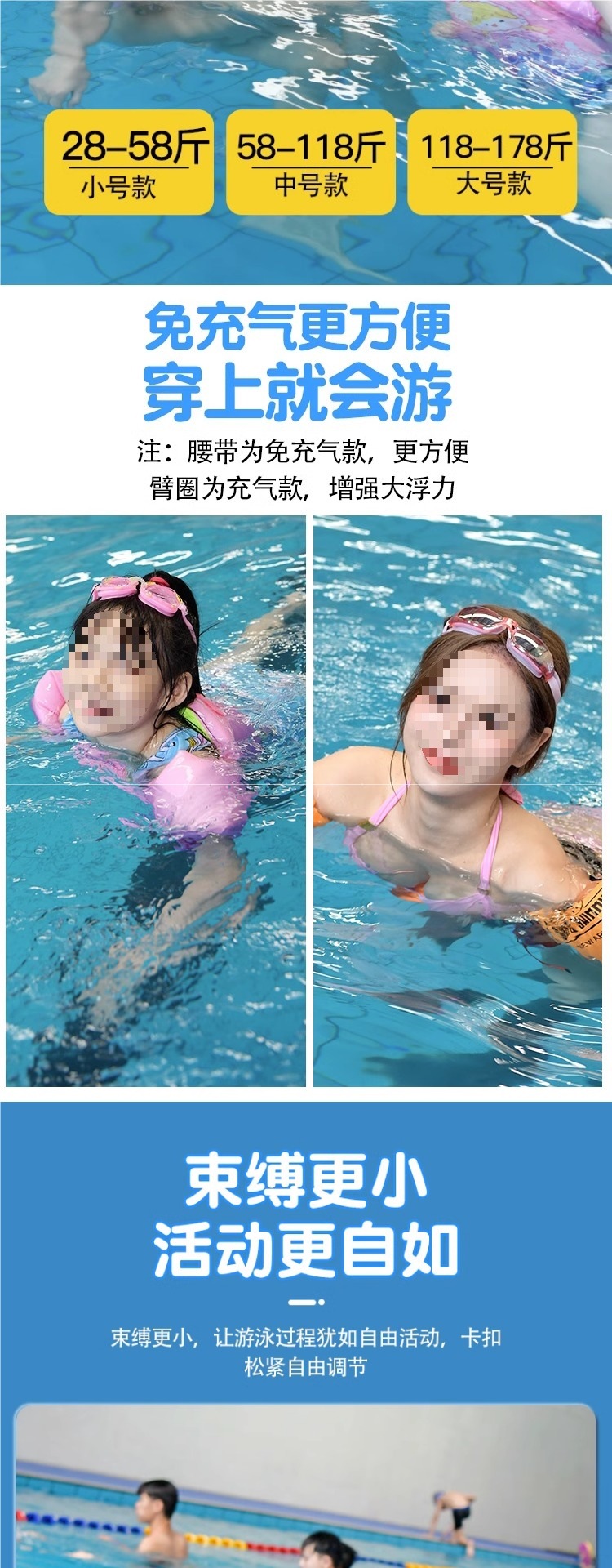 성인 및 어린이 수영 반지 및 수영 장비, 성인 및 초보자를 위한 부력 재킷 및 워터 슬리브 전체 세트, 일상 사용을 위한 팔 반지 및 벨트