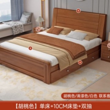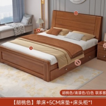 중국 스타일 단단한 나무 침대 1.8m 더블 침대 마스터 침실 경제적 인 간단한 1.2m 싱글 침대 가정용 1.8m 두꺼운 침대스토어 가기