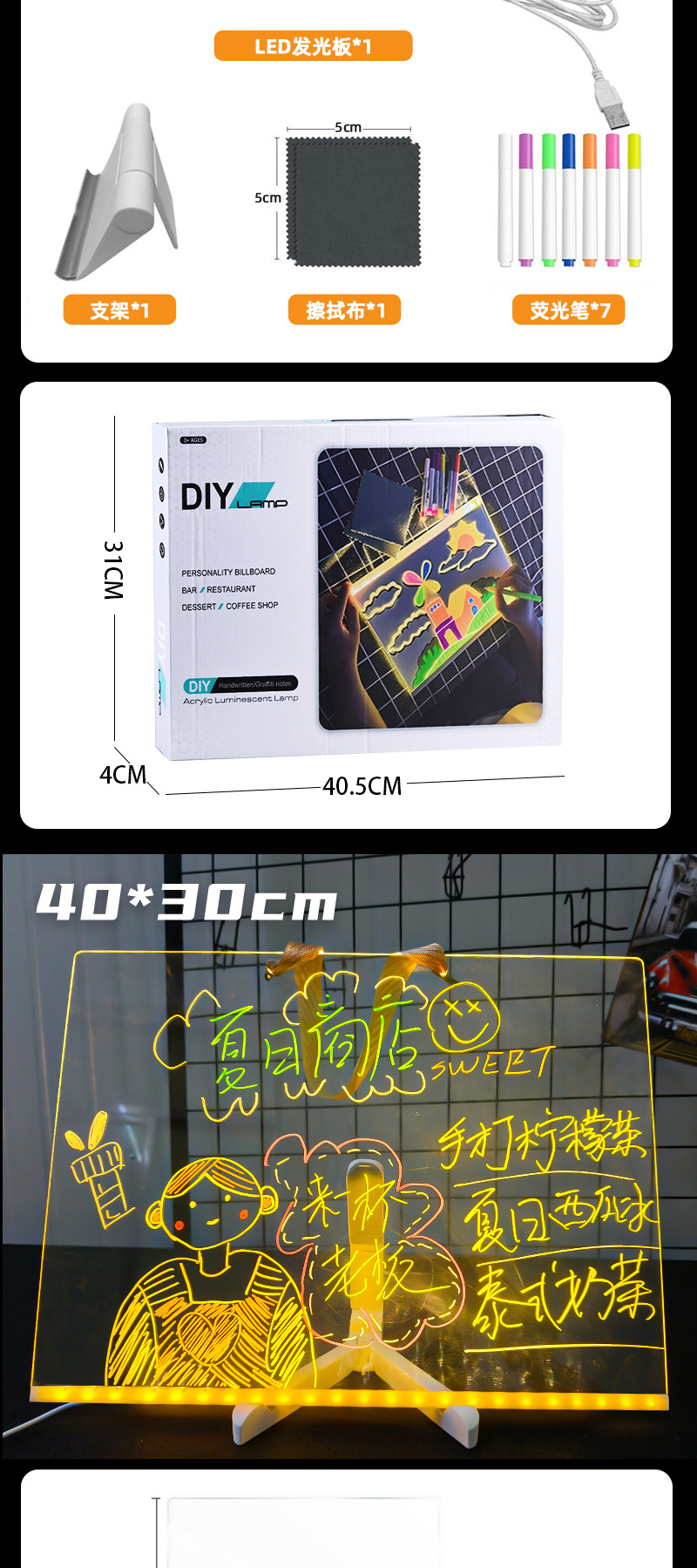 • LED 조명 손으로 그린 ​​발광 화판 (40*30CM)
