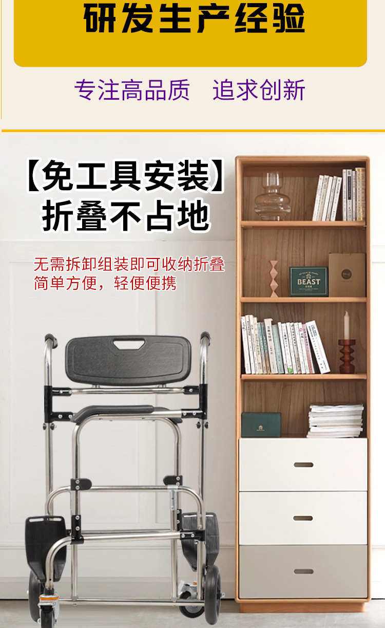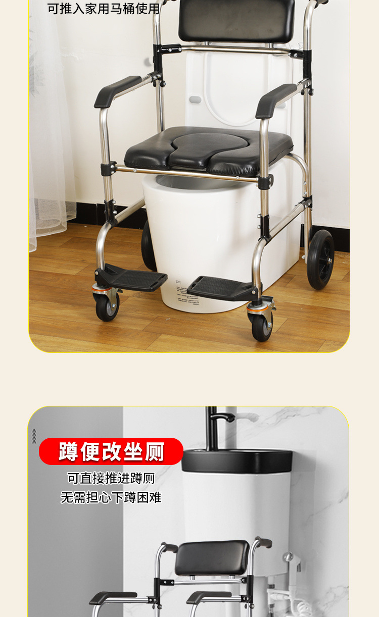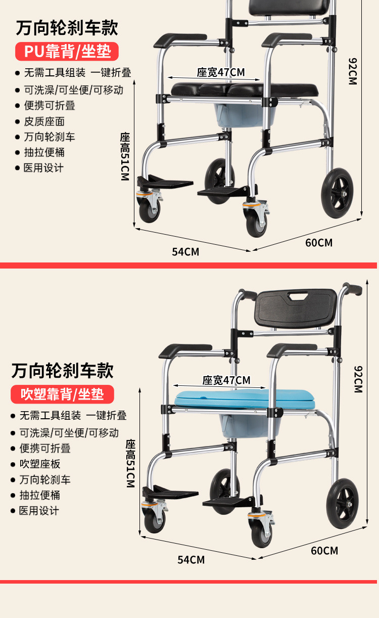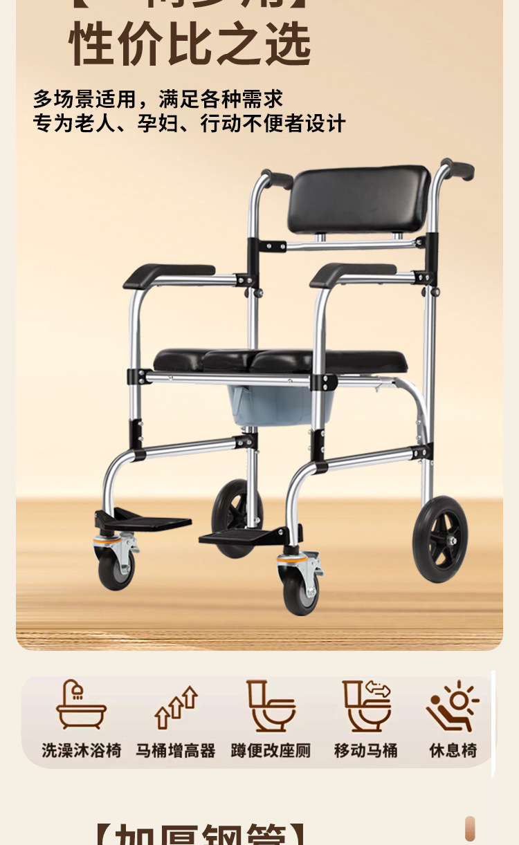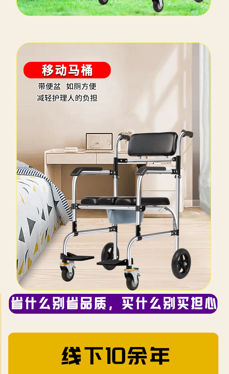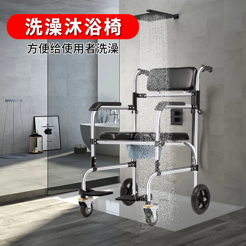노인용 변기 의자, 임산부 및 노인용 목욕용 휠체어, 바퀴가 달린 두꺼운 가정용 접이식 이동식 변기스토어 가기