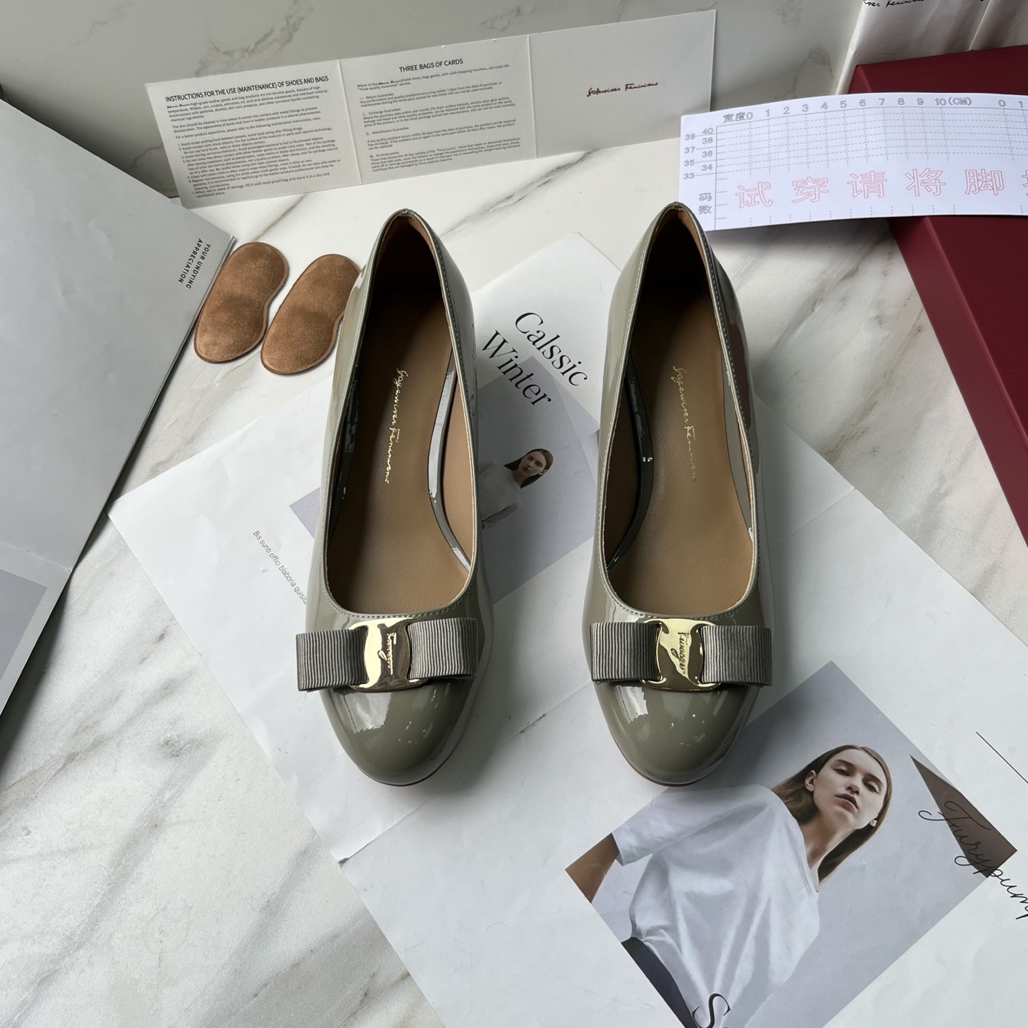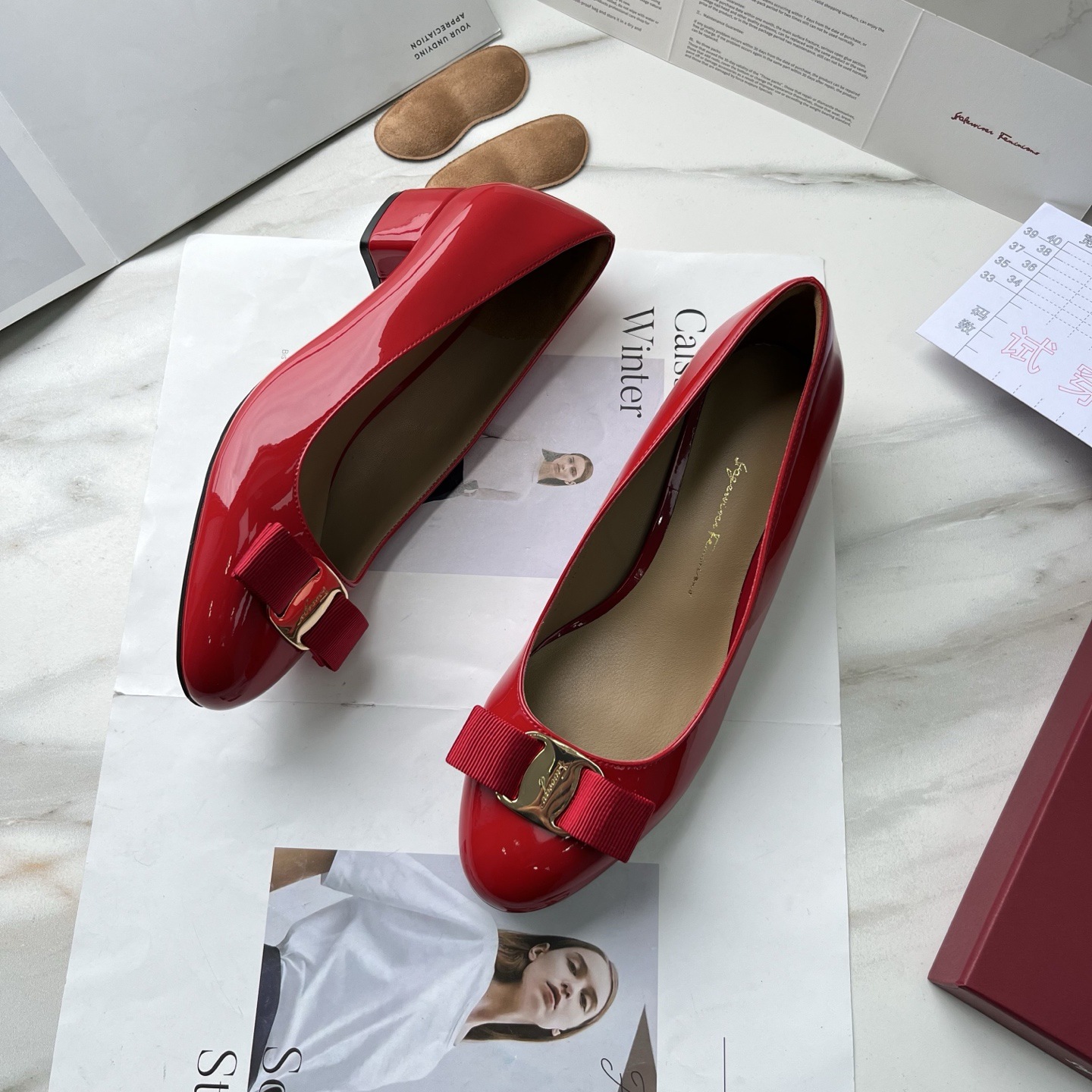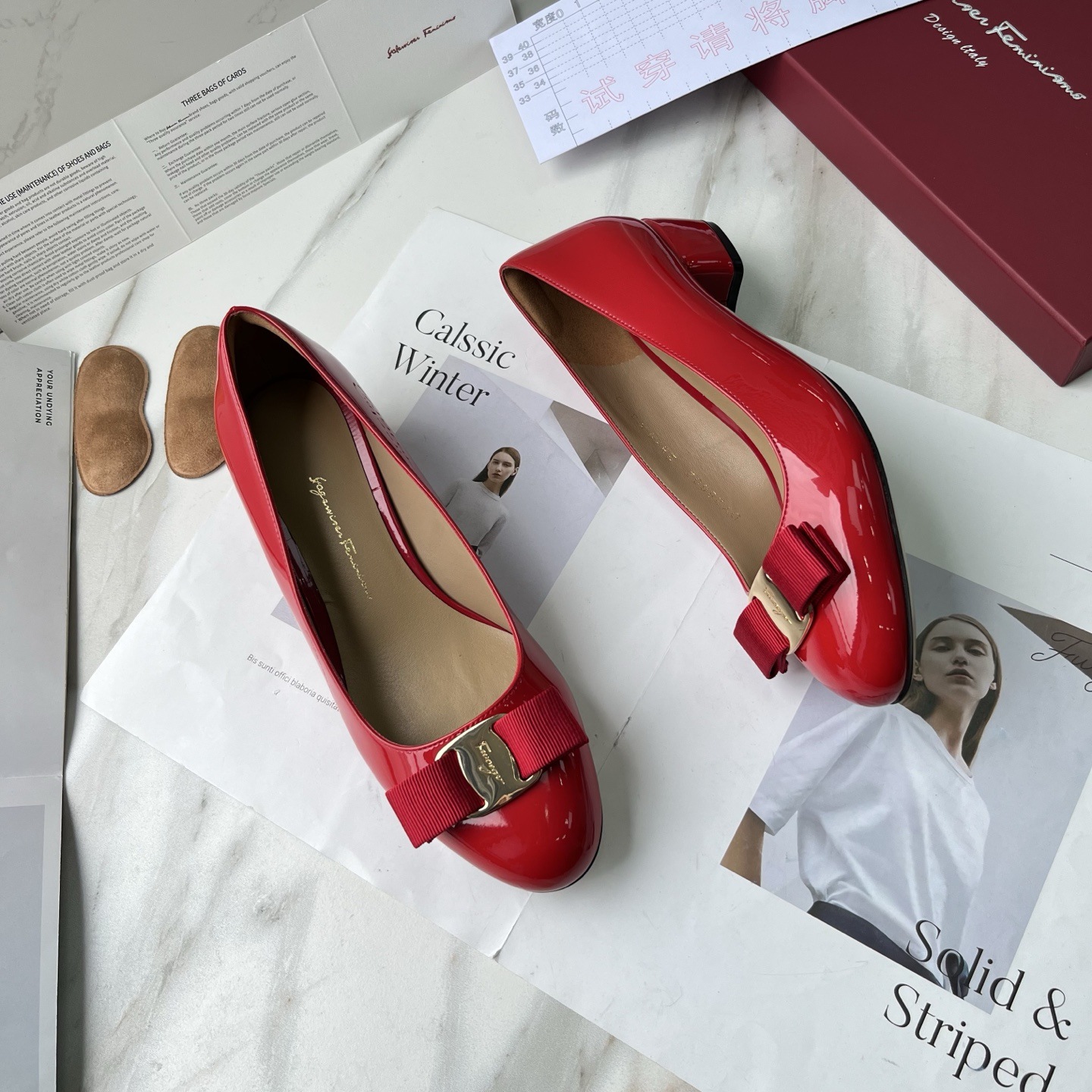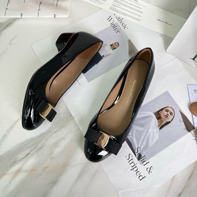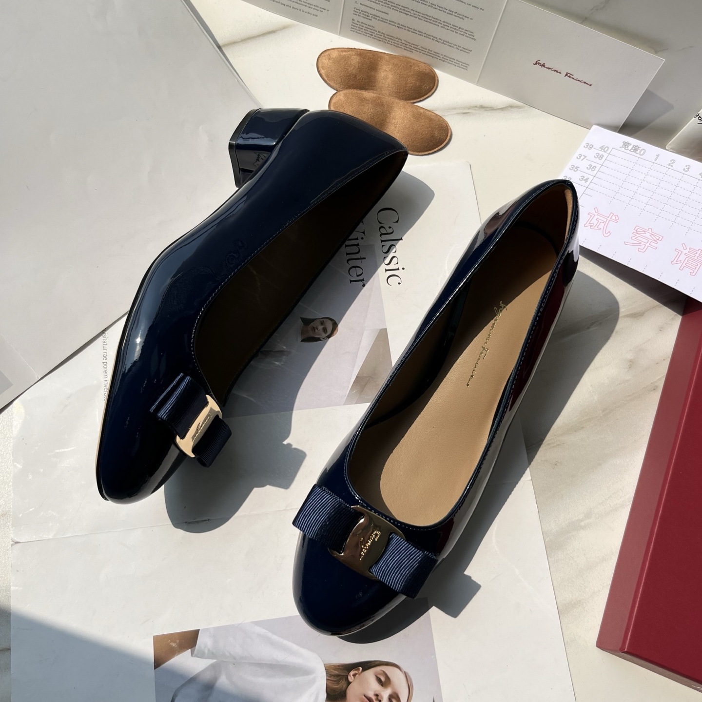 Fila SF 대체 다용도 클래식 패셔너블한 펌프스 라운드 토 보우 페이턴트 가죽 미드 힐 여성용 두꺼운 힐 슈즈