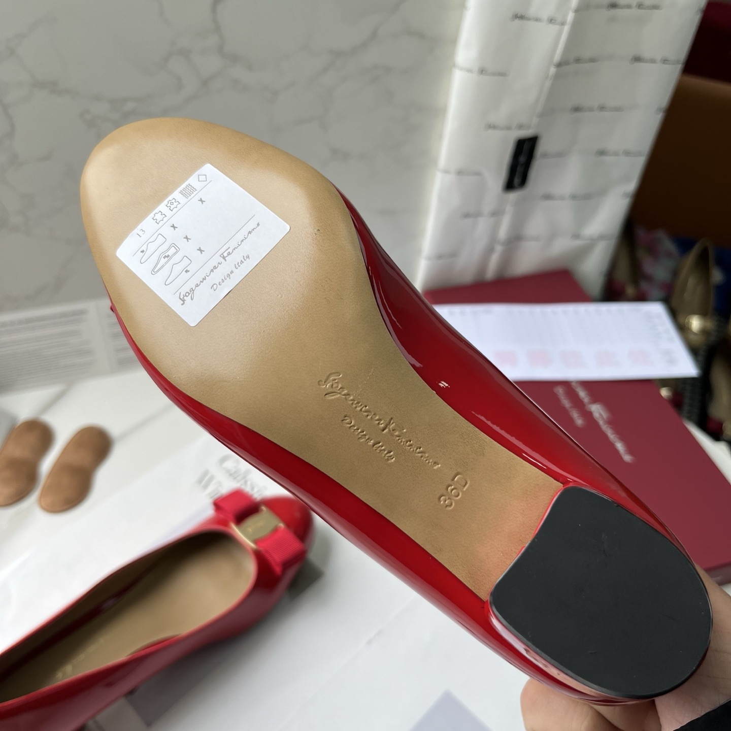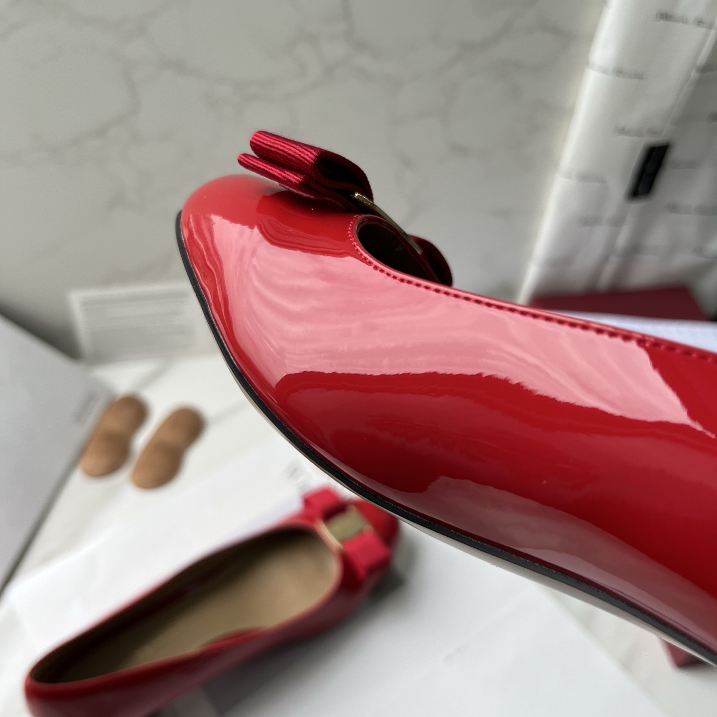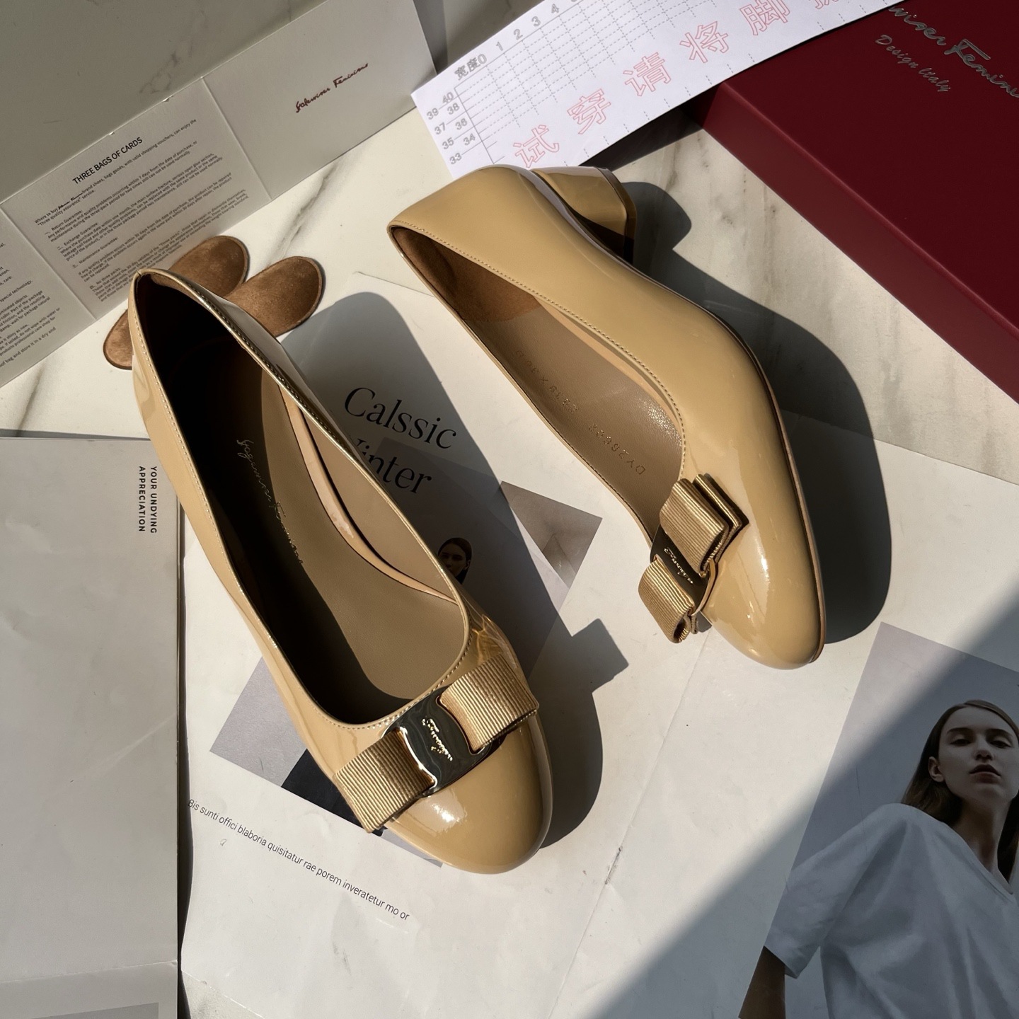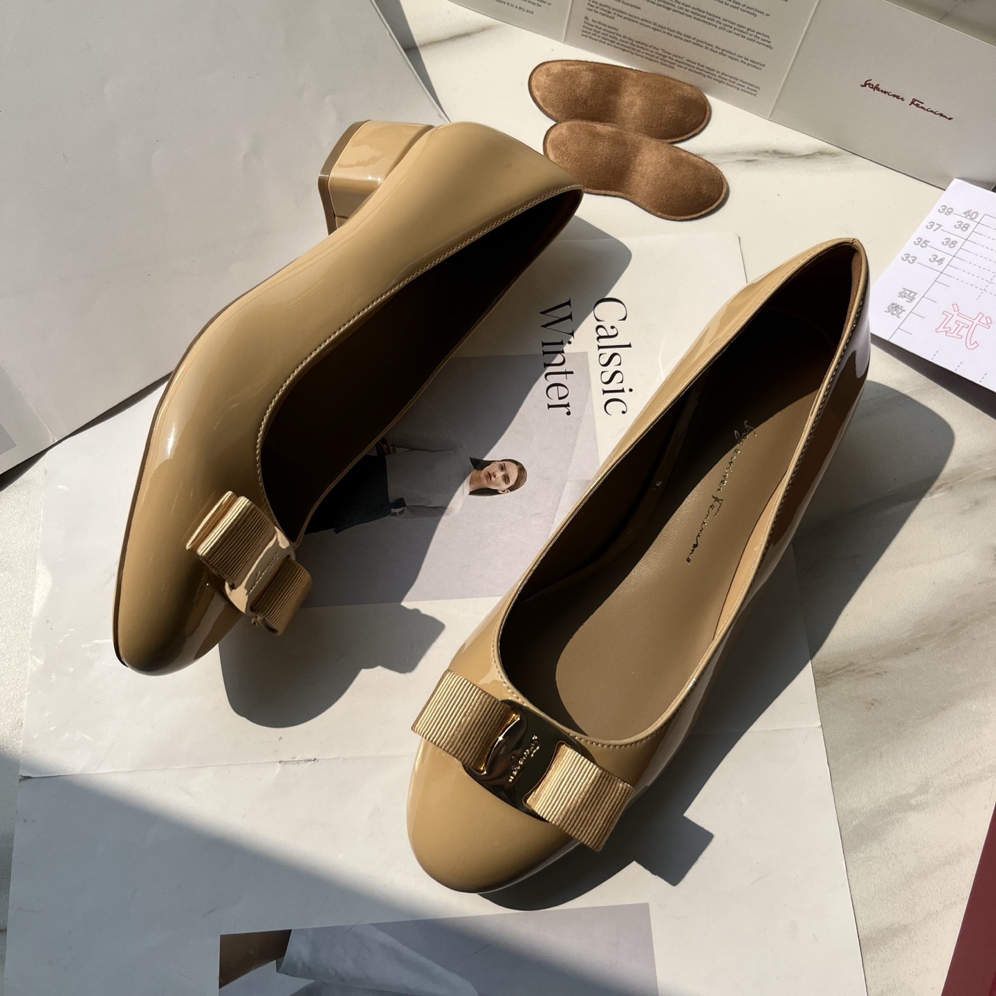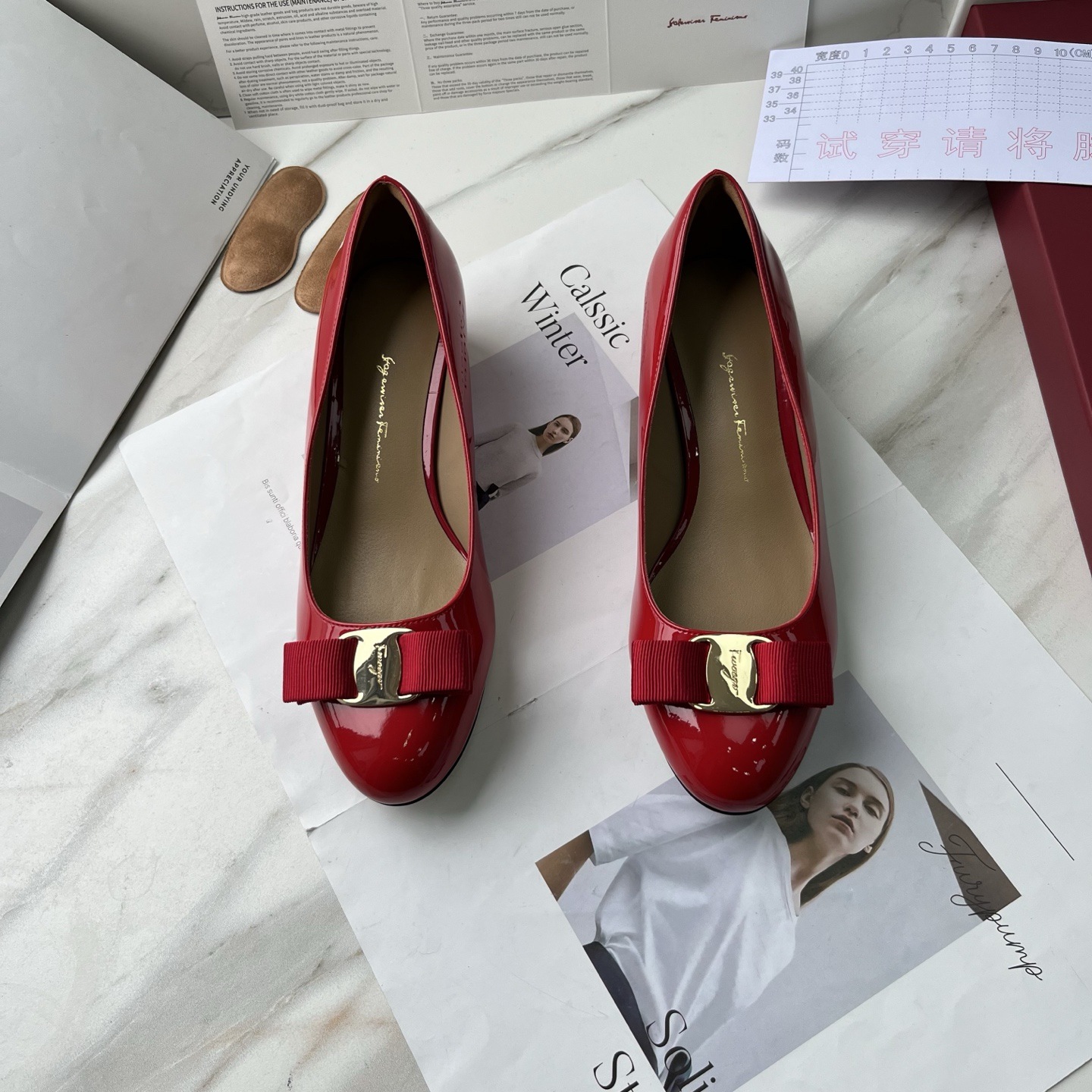 Fila SF 대체 다용도 클래식 패셔너블한 펌프스 라운드 토 보우 페이턴트 가죽 미드 힐 여성용 두꺼운 힐 슈즈