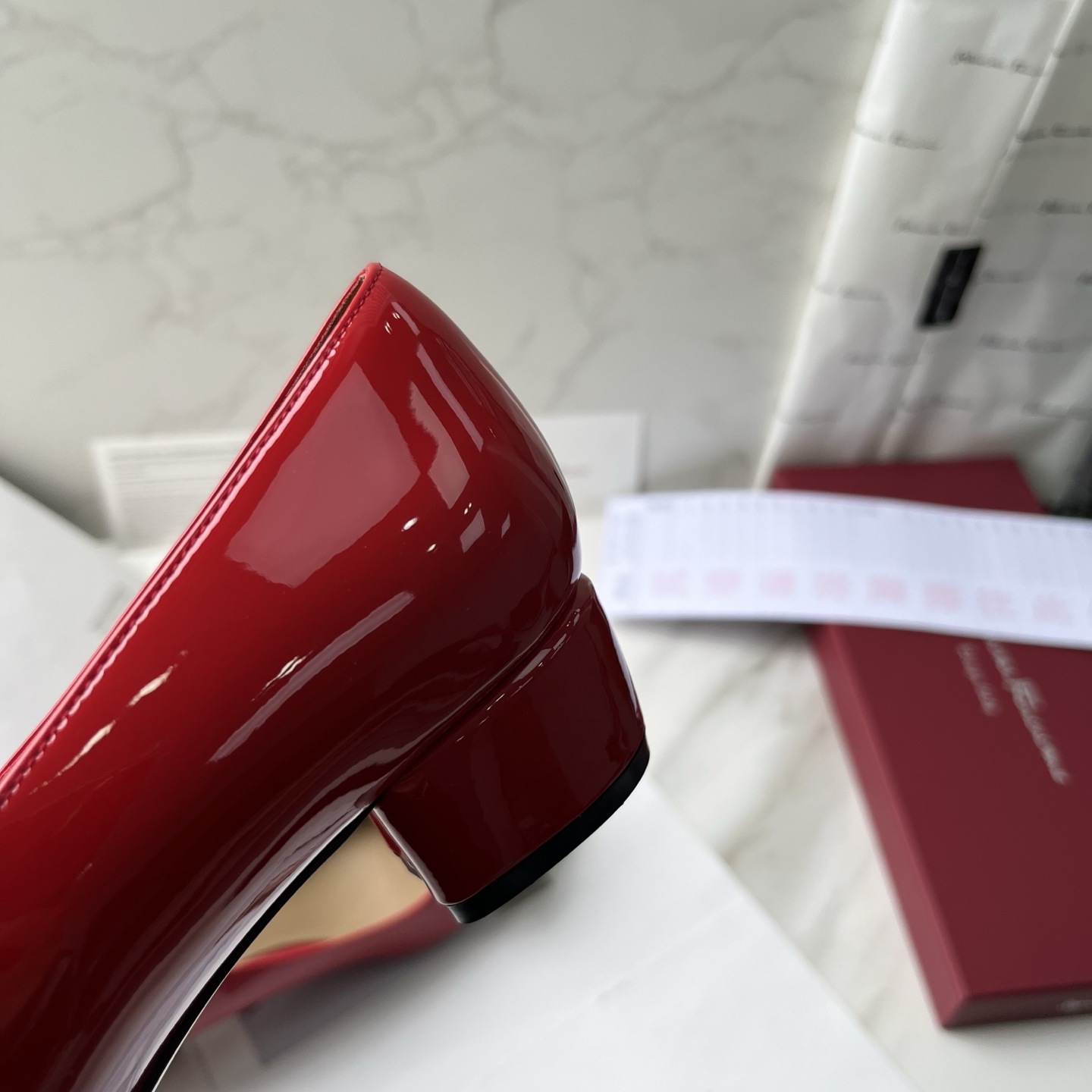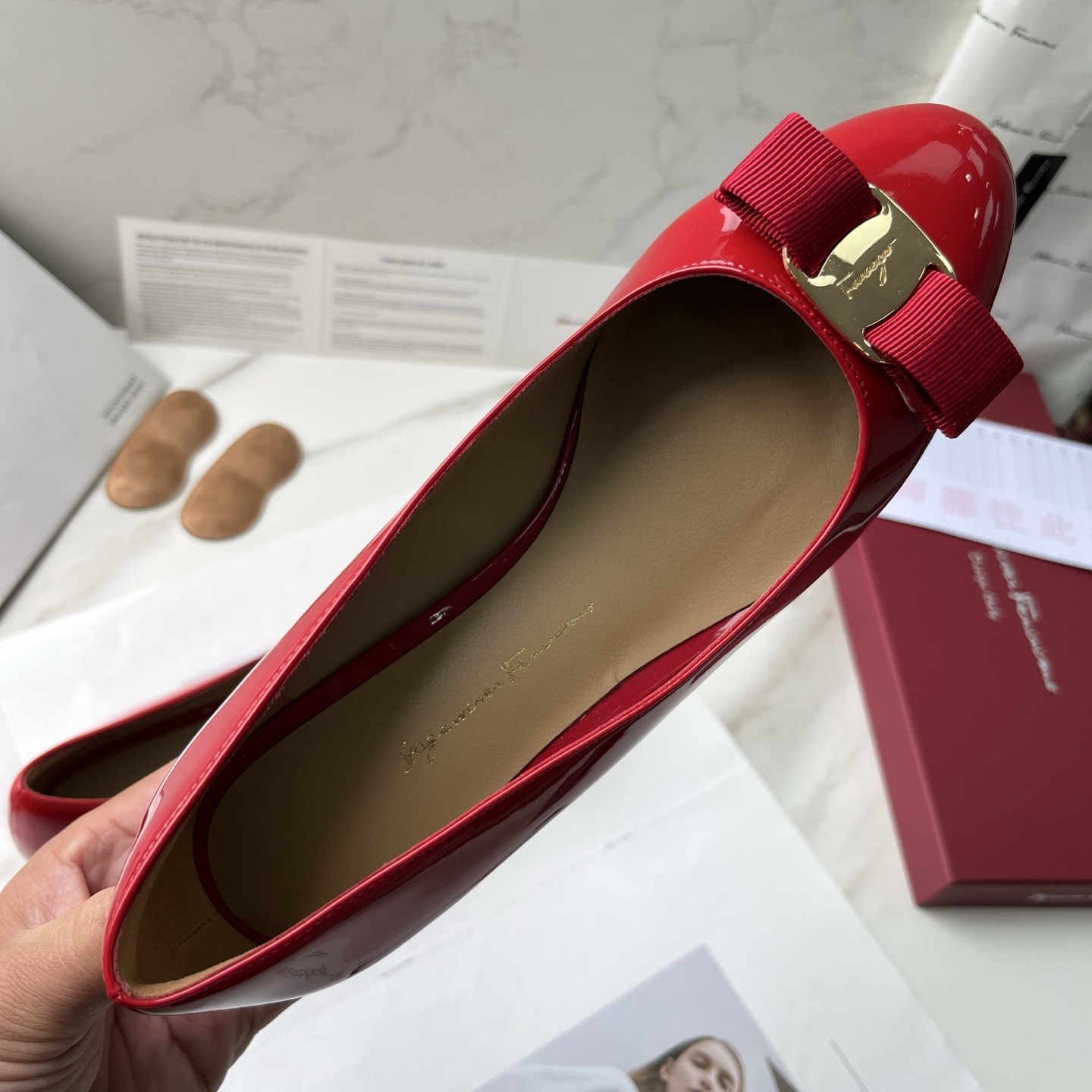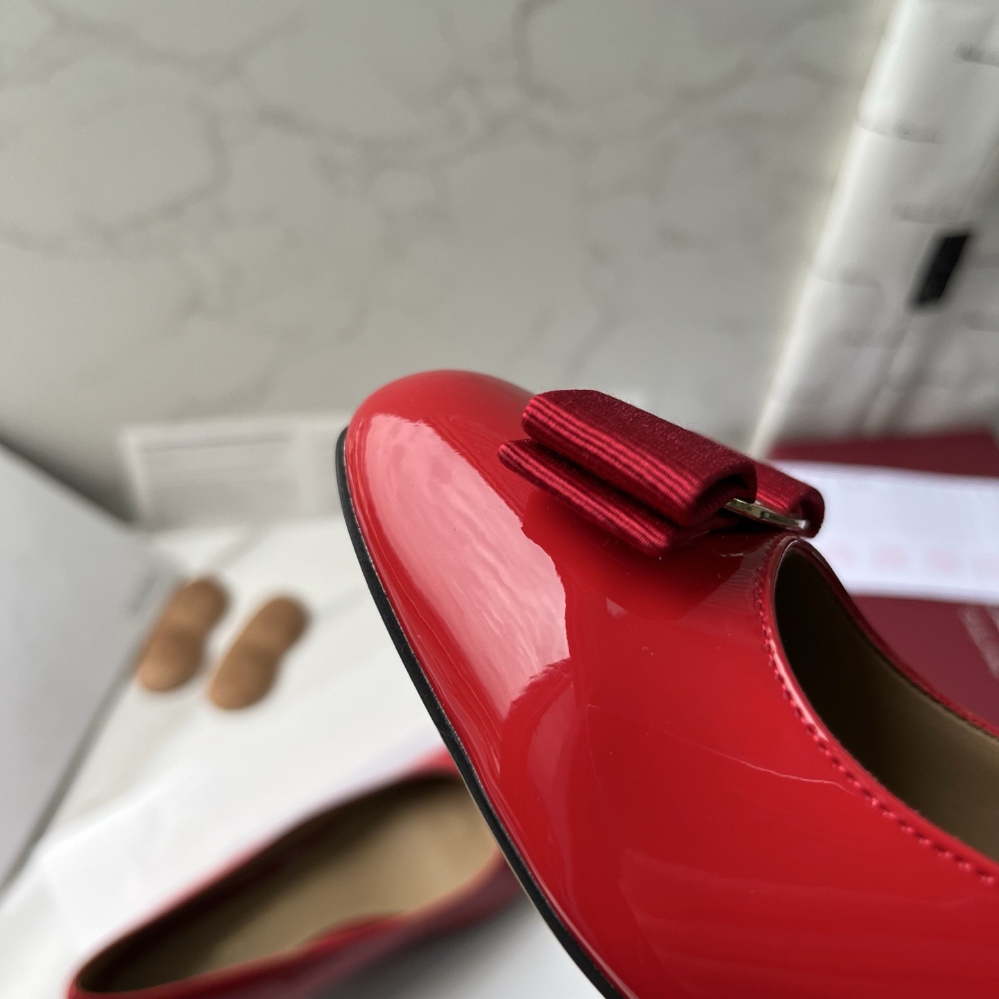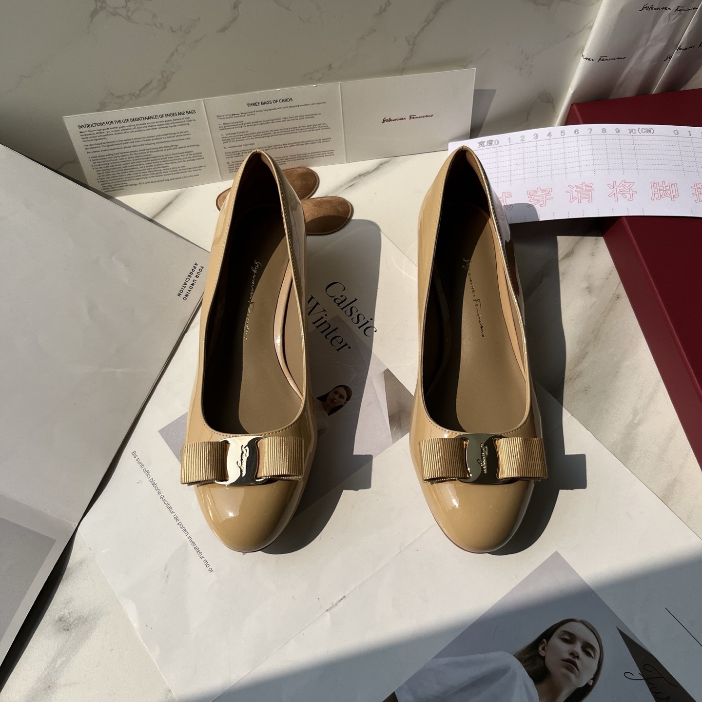 Fila SF 대체 다용도 클래식 패셔너블한 펌프스 라운드 토 보우 페이턴트 가죽 미드 힐 여성용 두꺼운 힐 슈즈