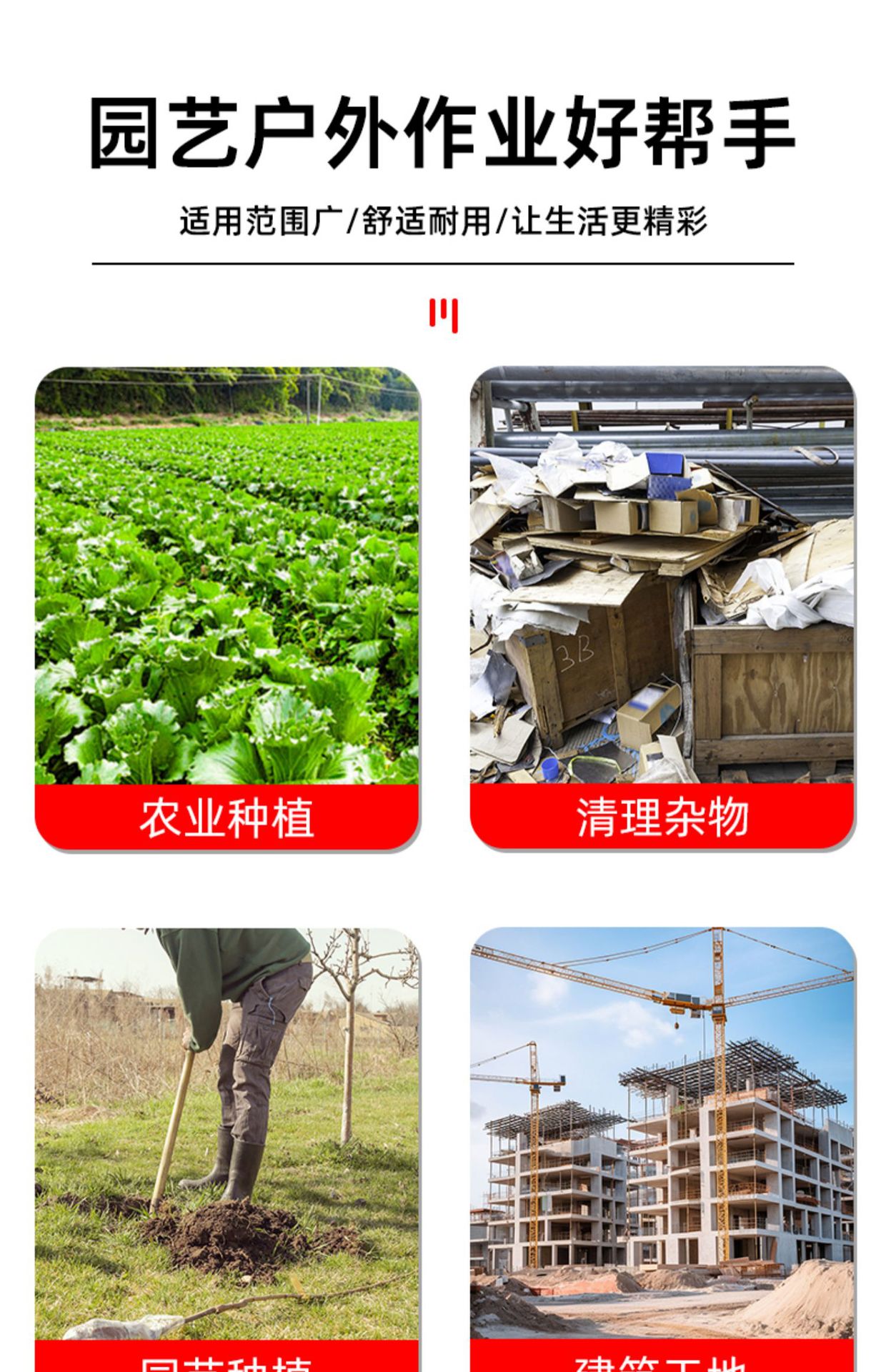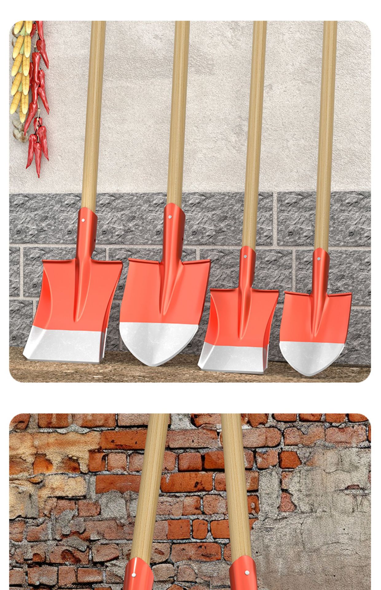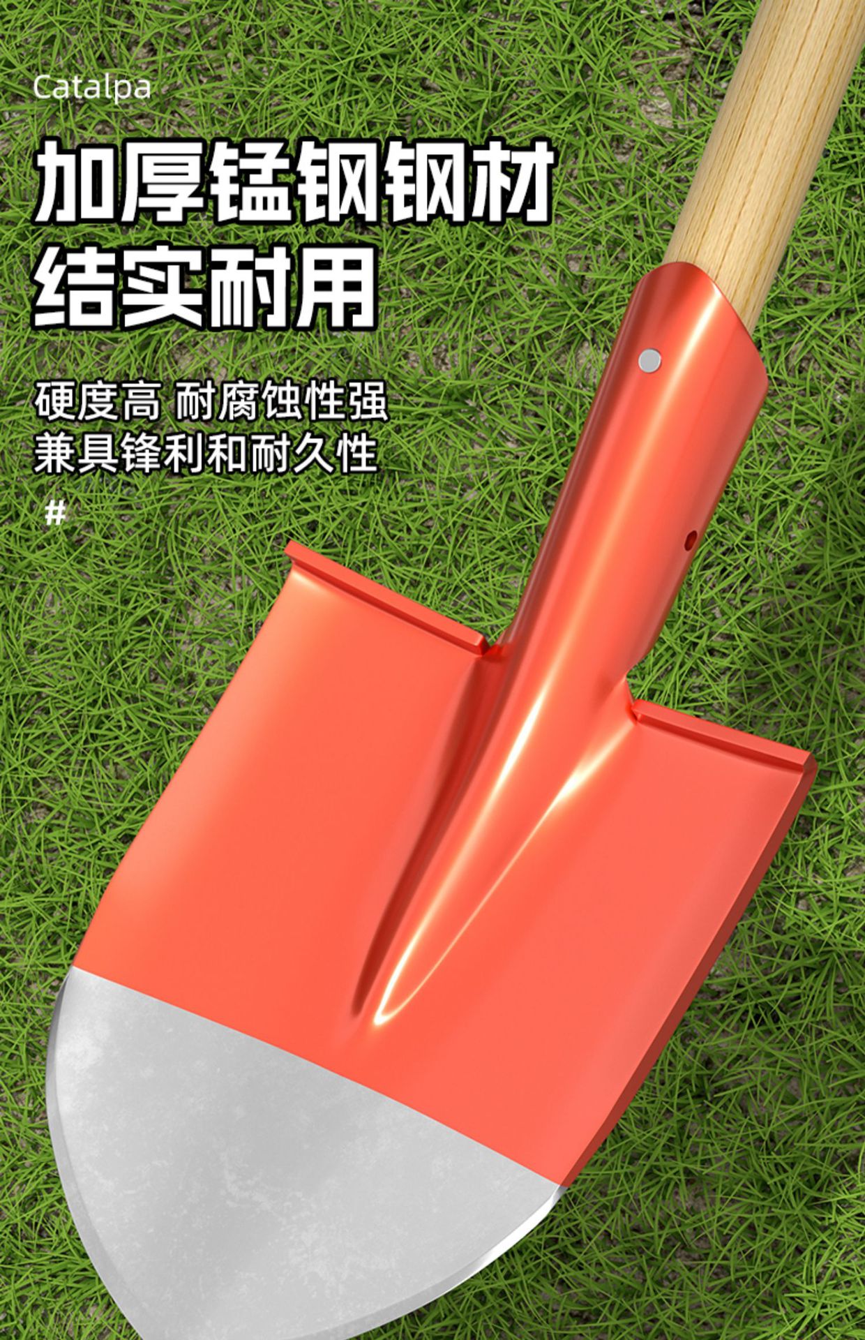 • 두꺼운 망간강 [중사각삽] + 1.4m 메뚜기나무 손잡이 (장갑포함)