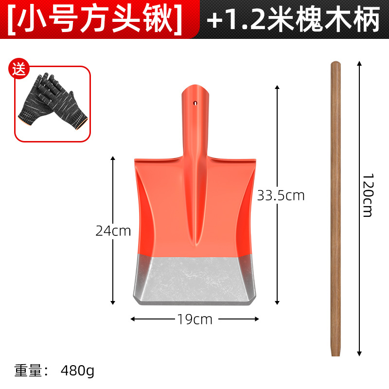 • 두꺼운 망간강 [소형 사각삽] + 1.2m 메뚜기나무 손잡이 (장갑포함)