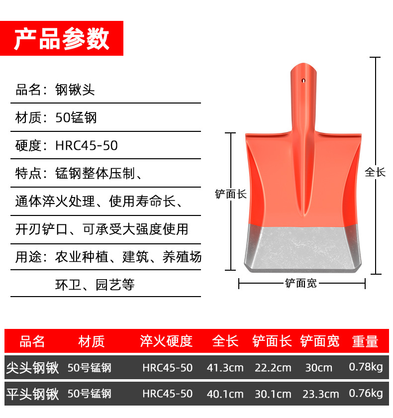 • [엔지니어링 등급(두꺼운 망간강)] 대형 뾰족한 삽(장갑 포함)