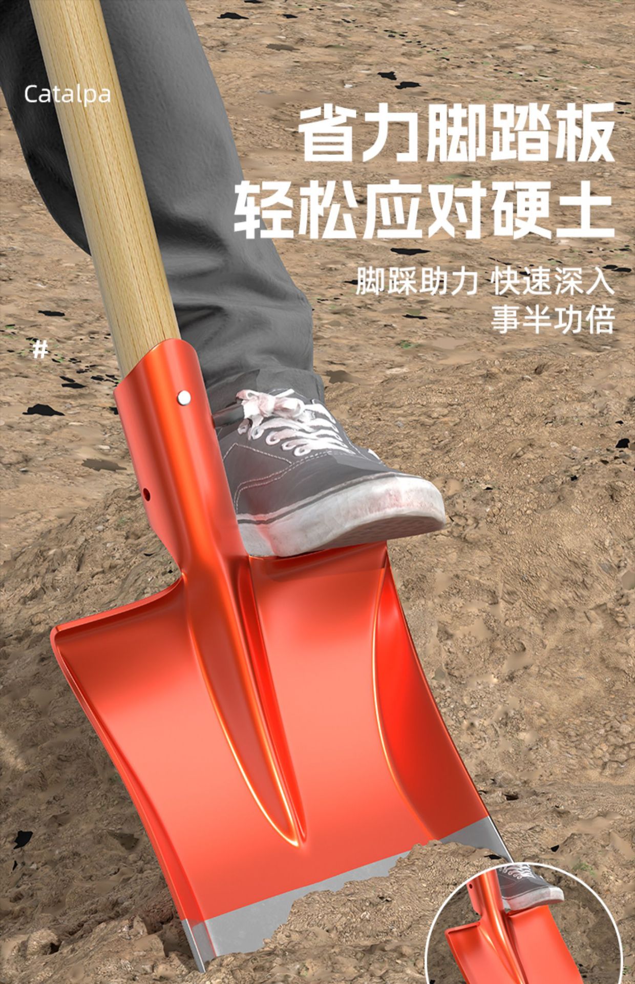 • 두꺼운 망간강 [작은 끝 삽] + 1.2m 메뚜기 나무 손잡이 (장갑 포함)