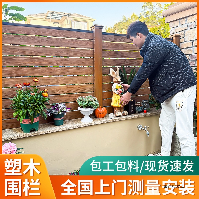 플라스틱 목재 울타리, 야외 안뜰 울타리, 정원 부식 방지 목재 울타리, 작은 마당 테라스, 조각된 목재 플라스틱 난간스토어 가기