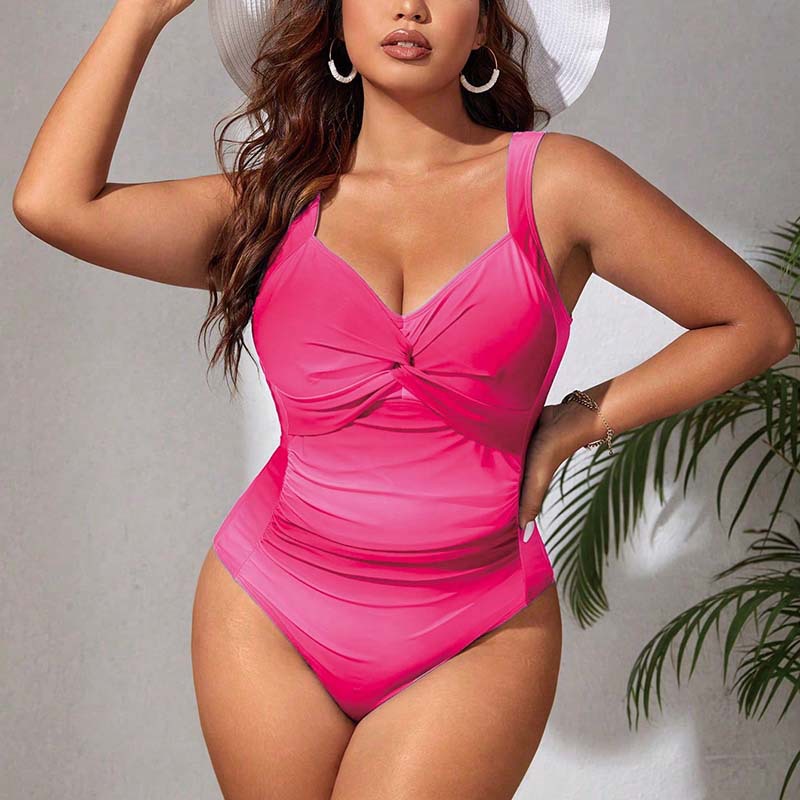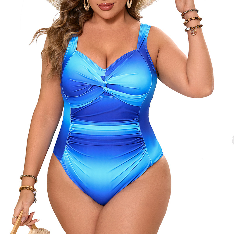 대외 무역 새로운 플러스 사이즈 비키니 그라데이션 v 넥 수영복 Pleated 슬리밍 원피스 수영복 여성