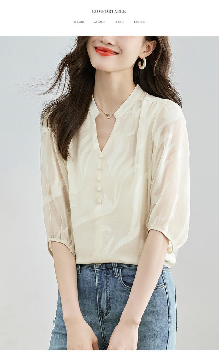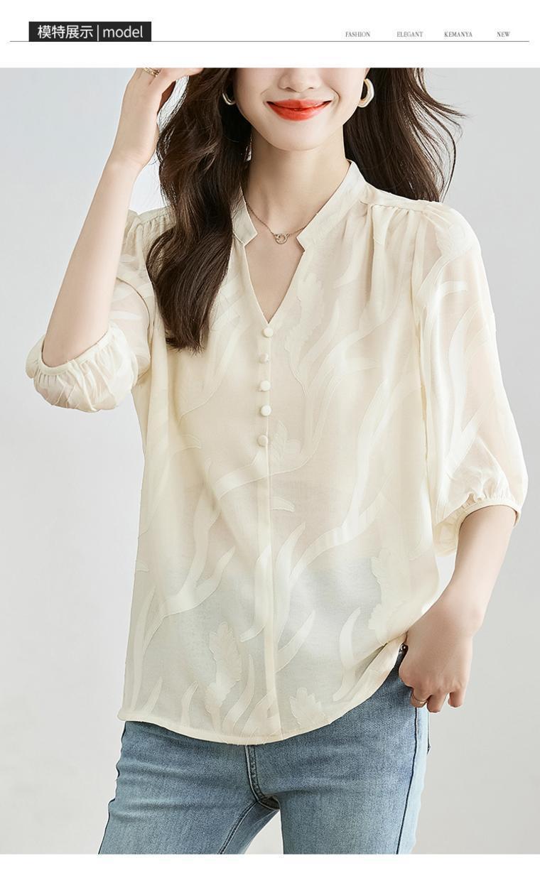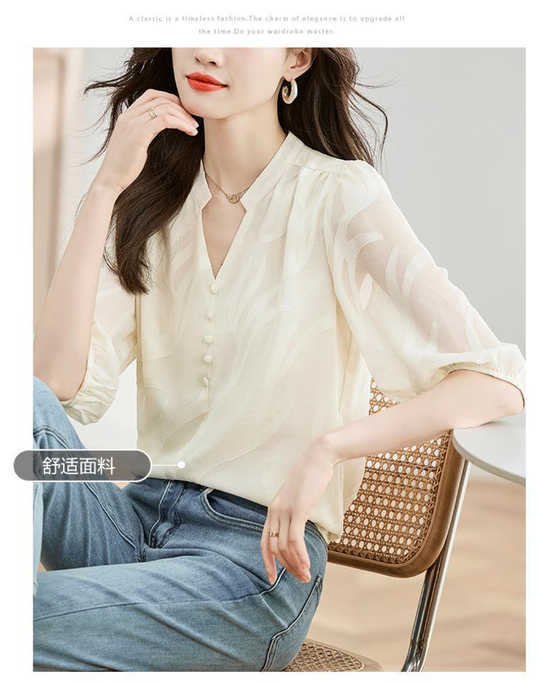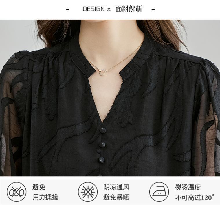여성을위한 얇은 검은 색 반팔 쉬폰 셔츠 2025 여름 새로운 스타일 유행 레이스 셔츠 느슨한 배꼽 커버 탑스토어 가기