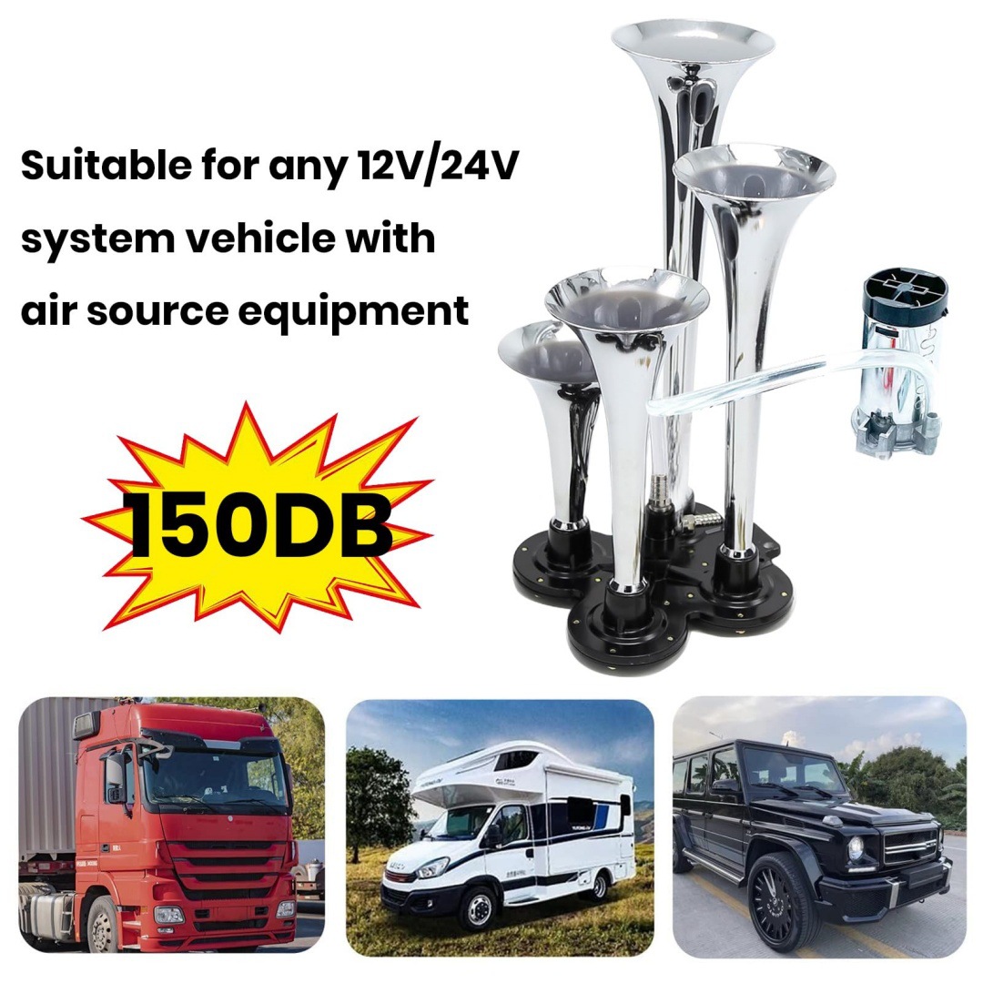 크로스보더 호른 4파이프 에어혼 150DB 전자제어 4파이프 에어혼 튜닝 기차소리 매우 시끄러움스토어 가기