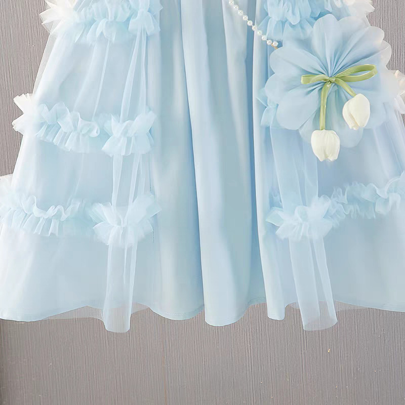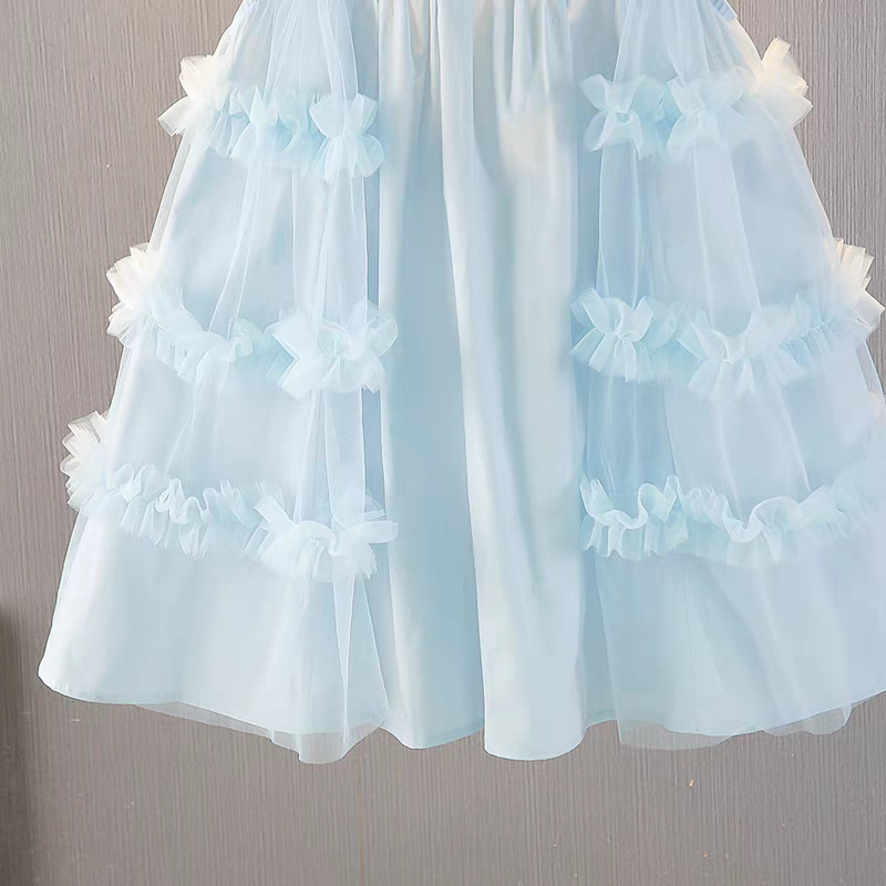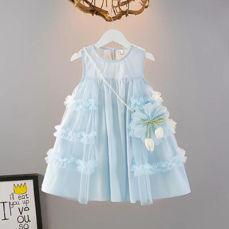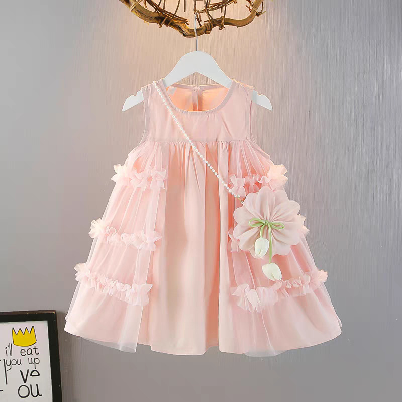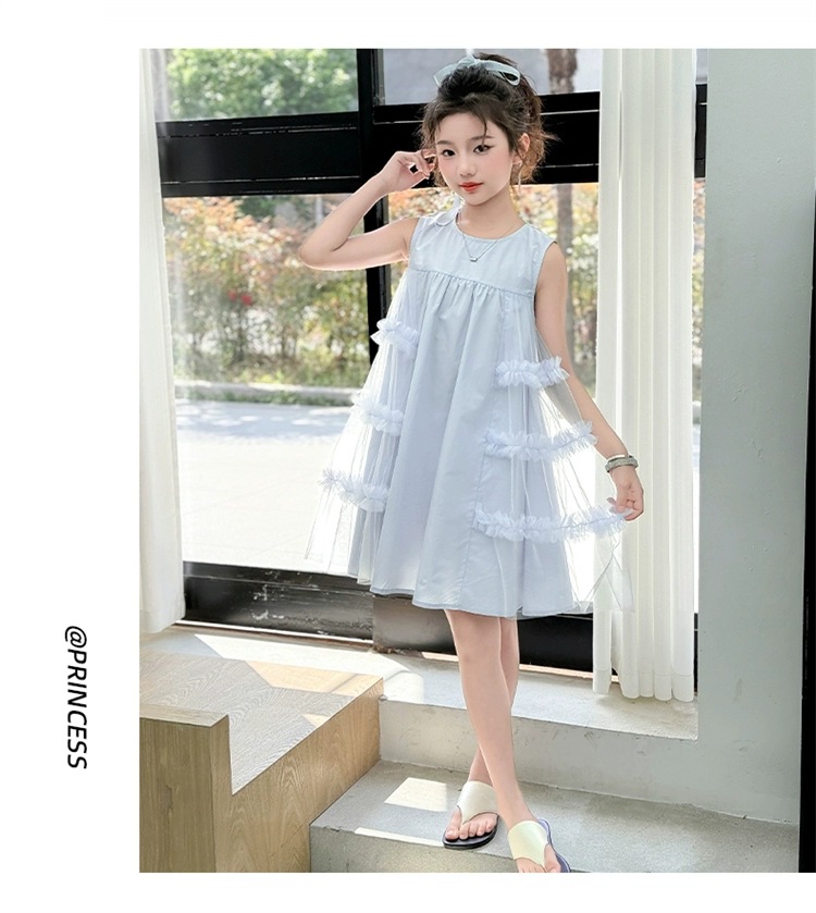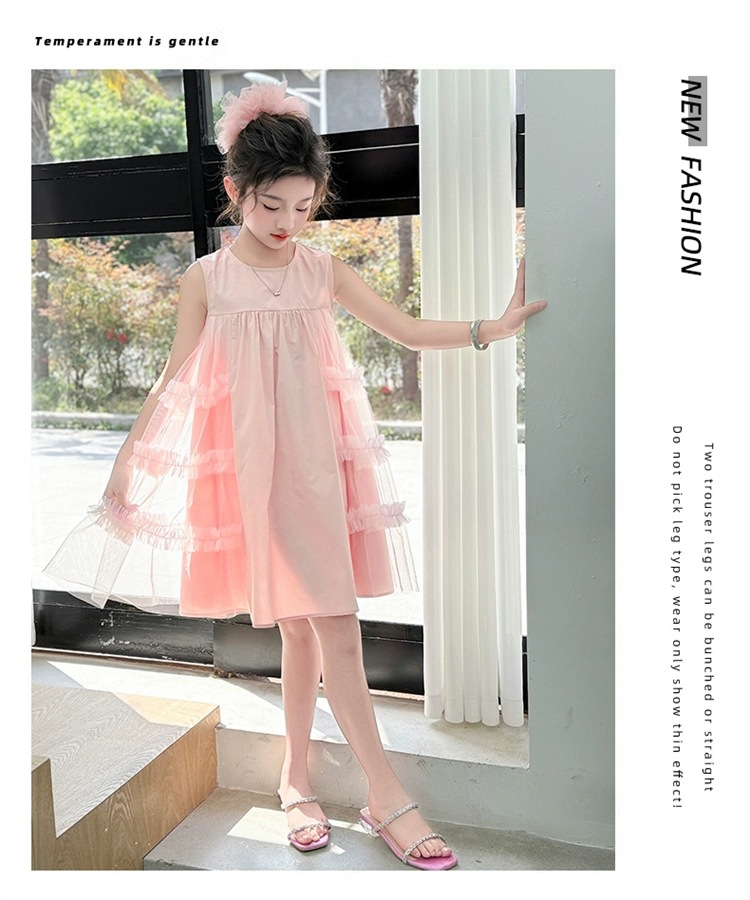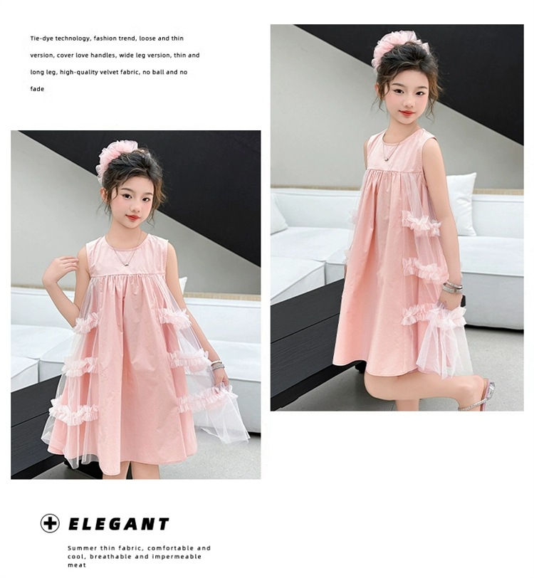 여자 여름 드레스 새로운 스타일 아기 소녀 유행 얇은 치마 어린이 패션 공주 드레스 메쉬 조끼 드레스