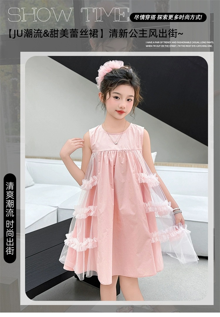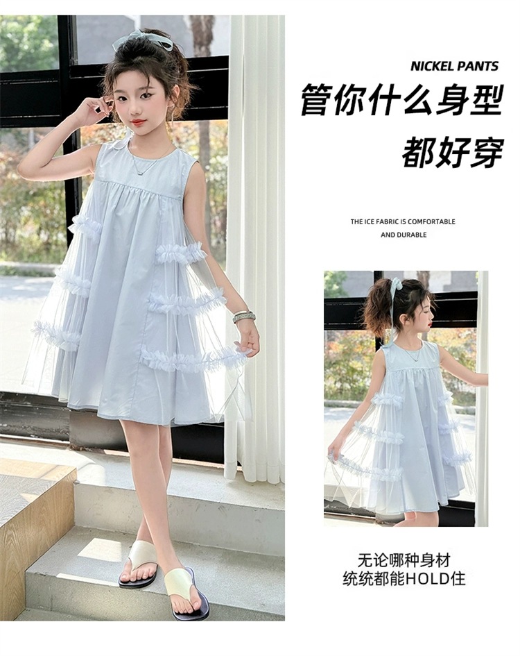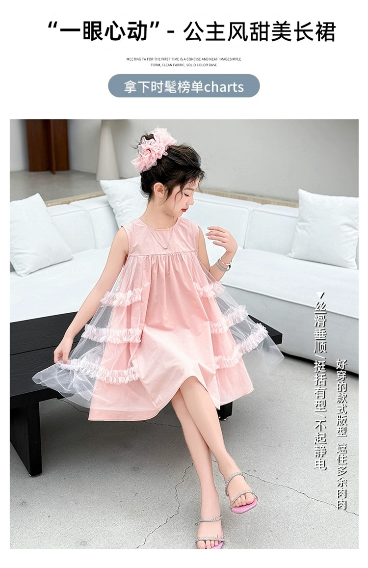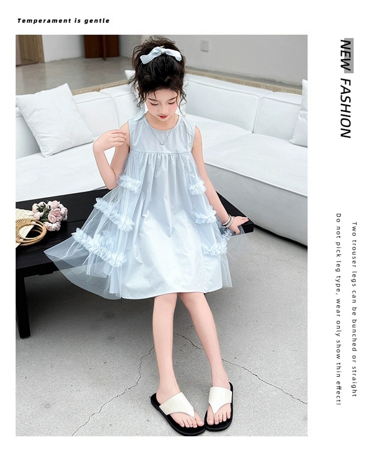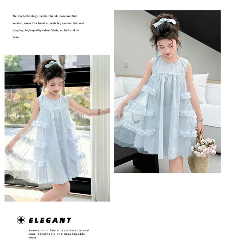여자 여름 드레스 새로운 스타일 아기 소녀 유행 얇은 치마 어린이 패션 공주 드레스 메쉬 조끼 드레스스토어 가기