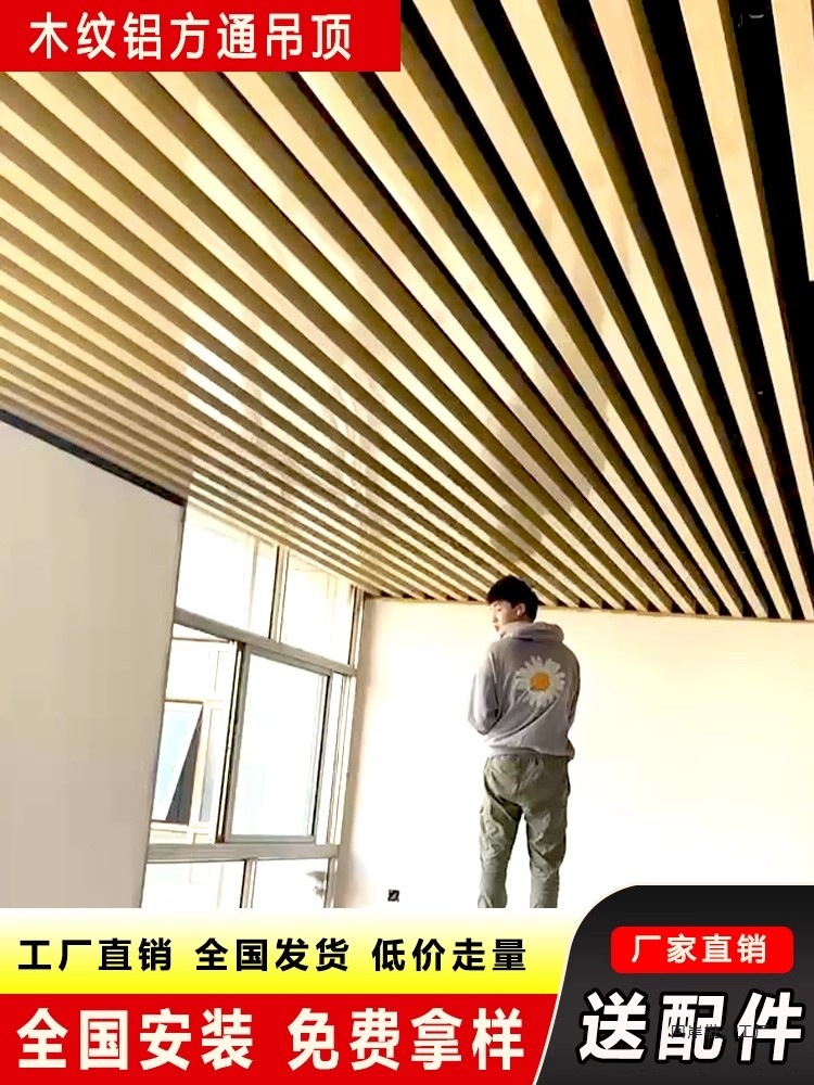 나뭇결 알루미늄 사각형 천장재 자체 설치 사무실 천장 스트립 장식 발코니 알루미늄 사각형 그릴 사양스토어 가기