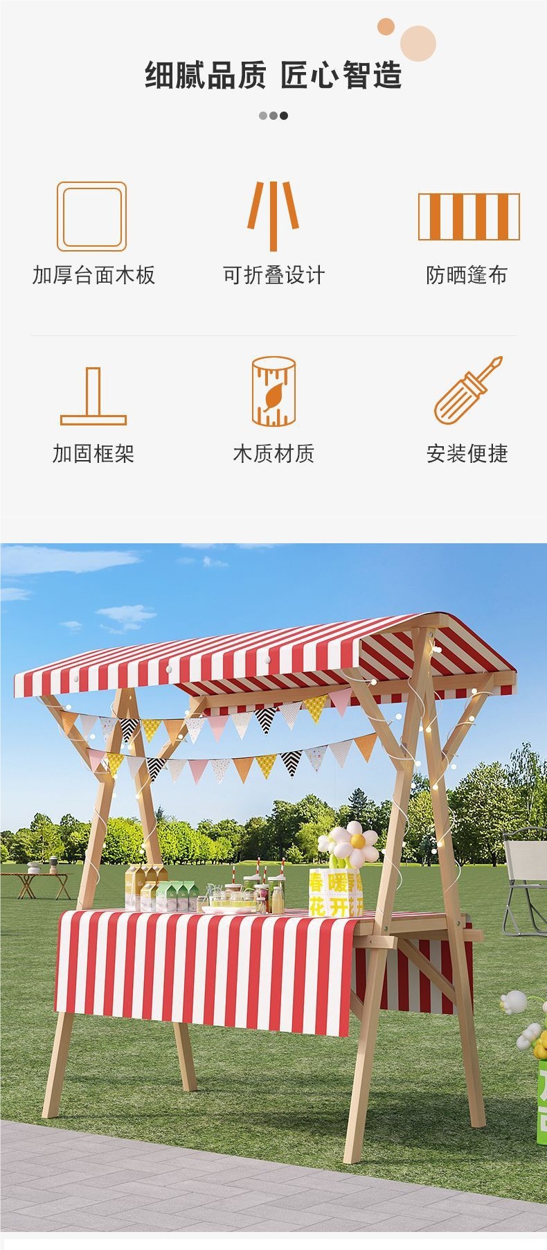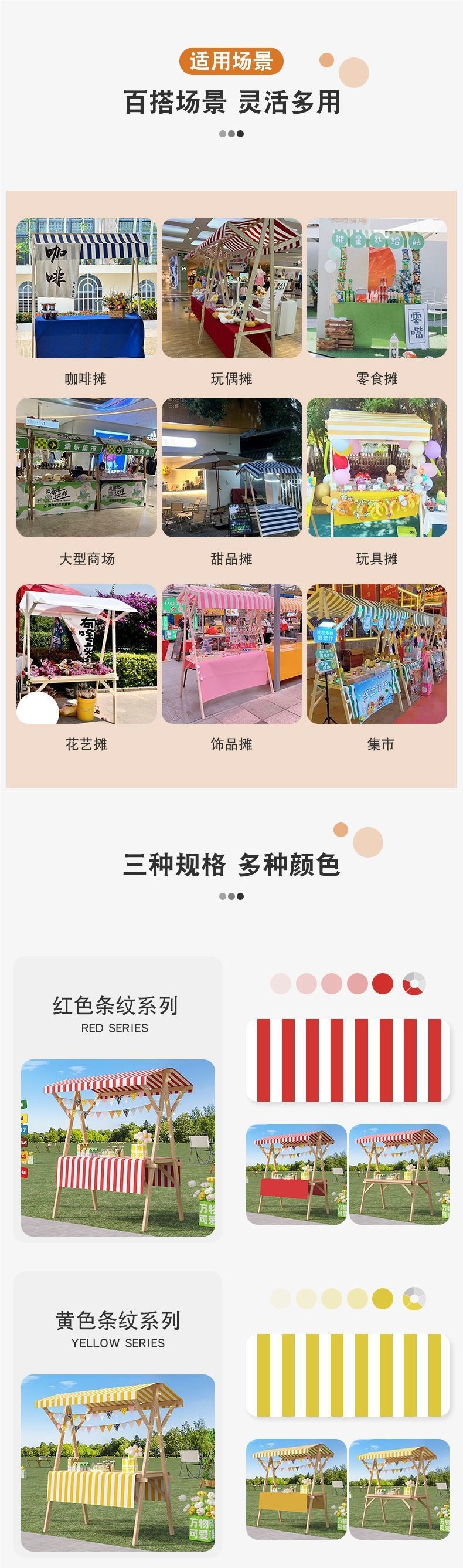 • 120*60*200+회전바퀴-주황색과 흰색 천장천+주황색 식탁보, 무료 랜턴