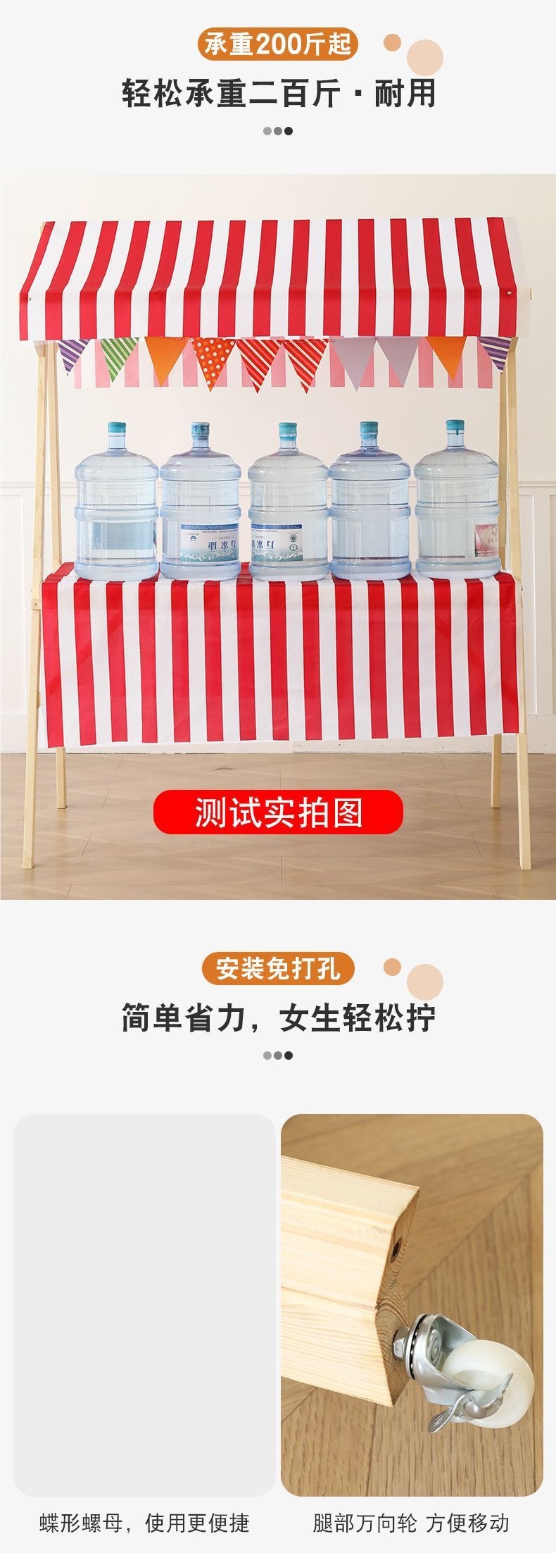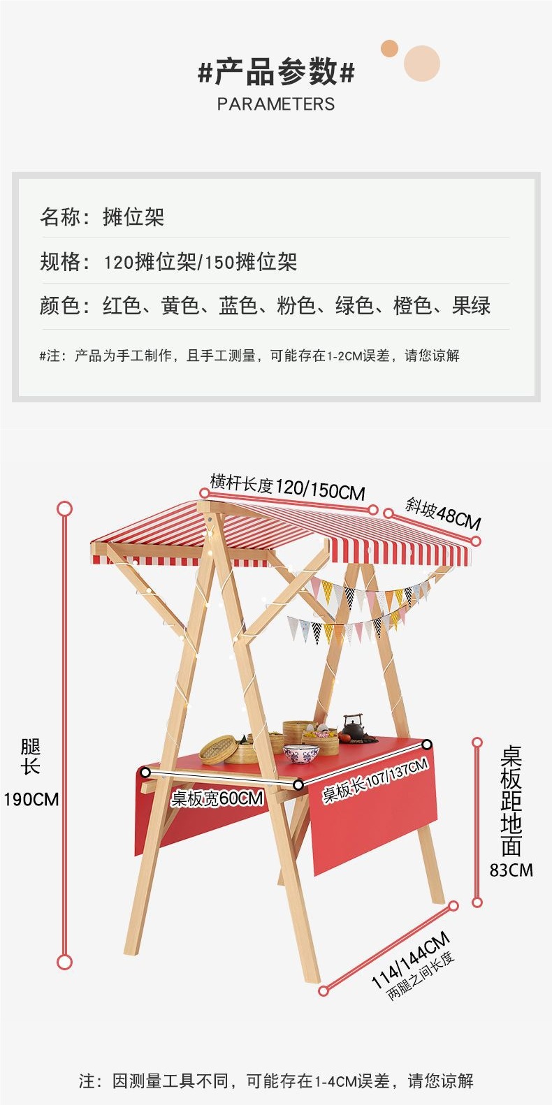 • 150*60*200+회전바퀴-빨간색과 흰색 천장 천+빨간색 식탁보, 무료 랜턴