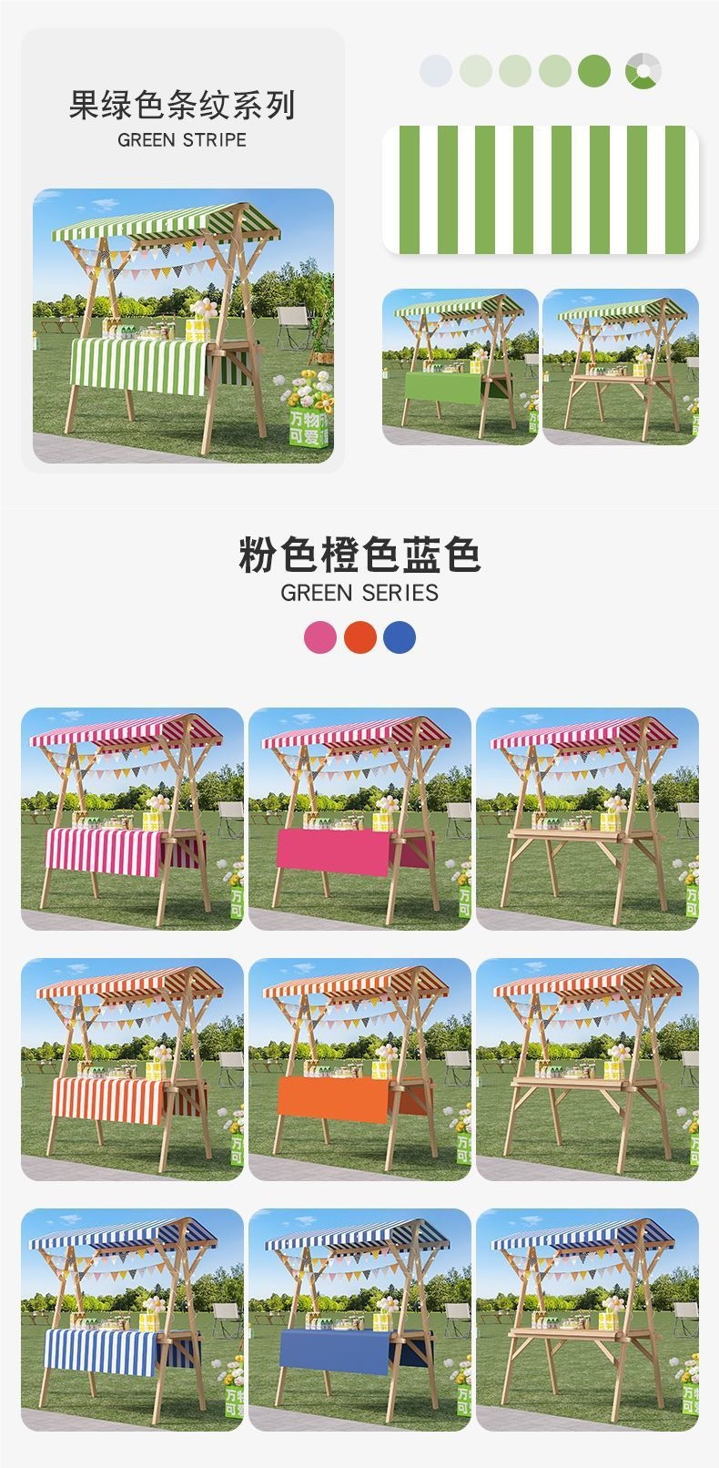 • 150*60*200+회전바퀴-과일녹색천장천+과일녹색 식탁보, 무료랜턴