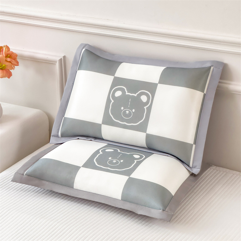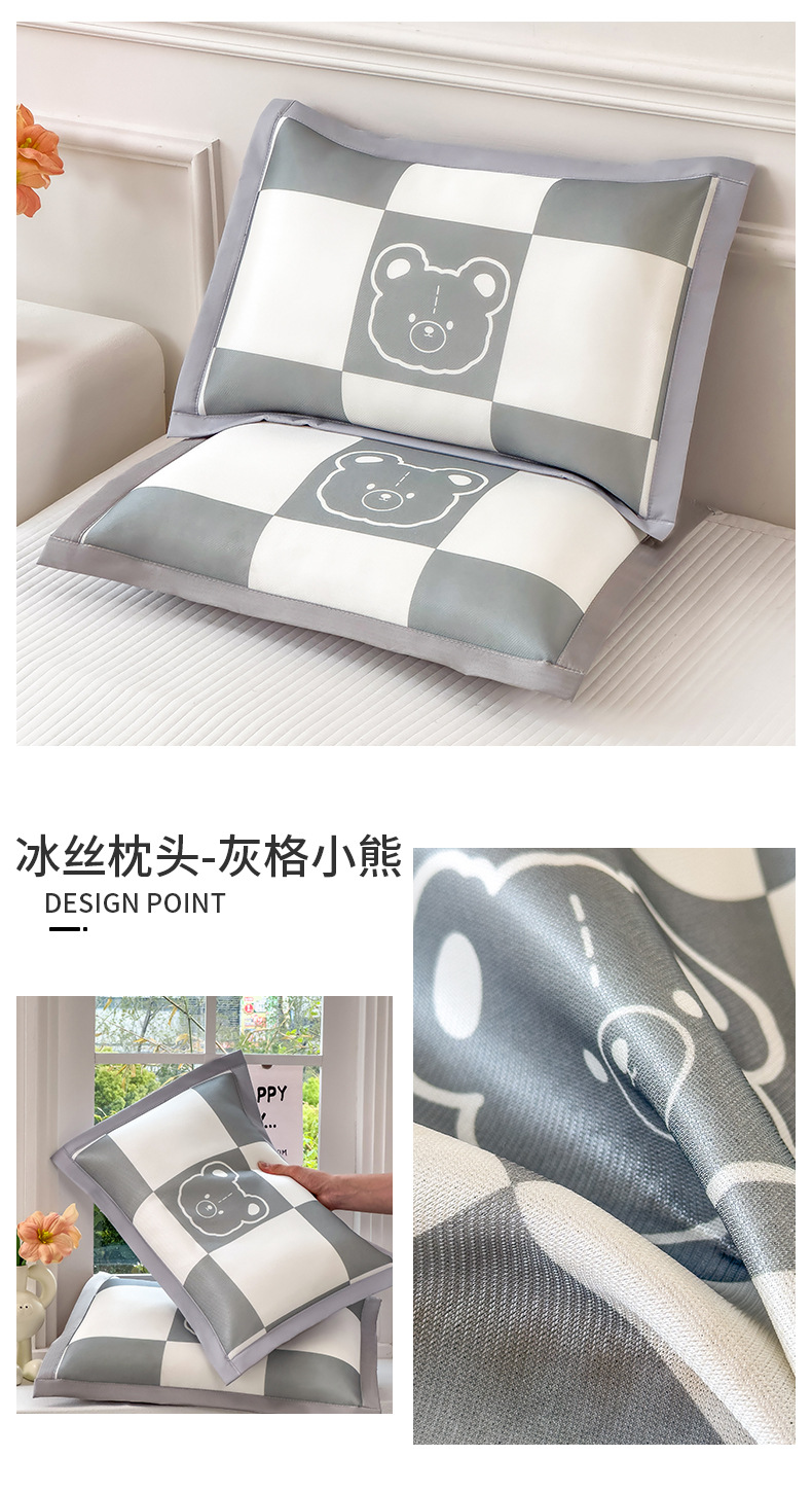 • 얼음 실크 베개 - 회색 체크무늬 곰