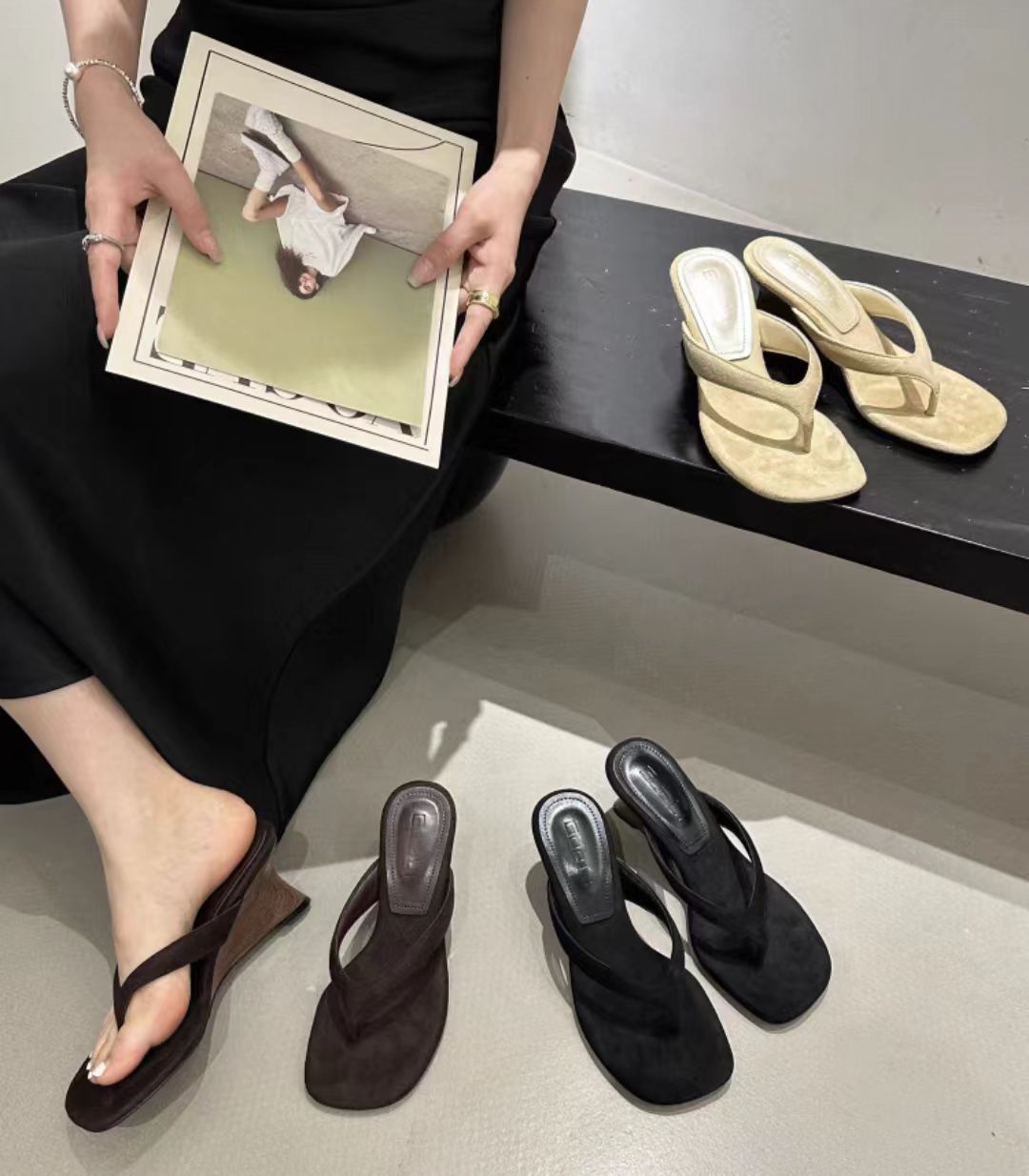 2025년 여름 신상 라운드 토 플립플롭 웨지 하이힐 레오파드 프린트 게으른 하프 드래그 아우터 오픈 토 여성 샌들스토어 가기
