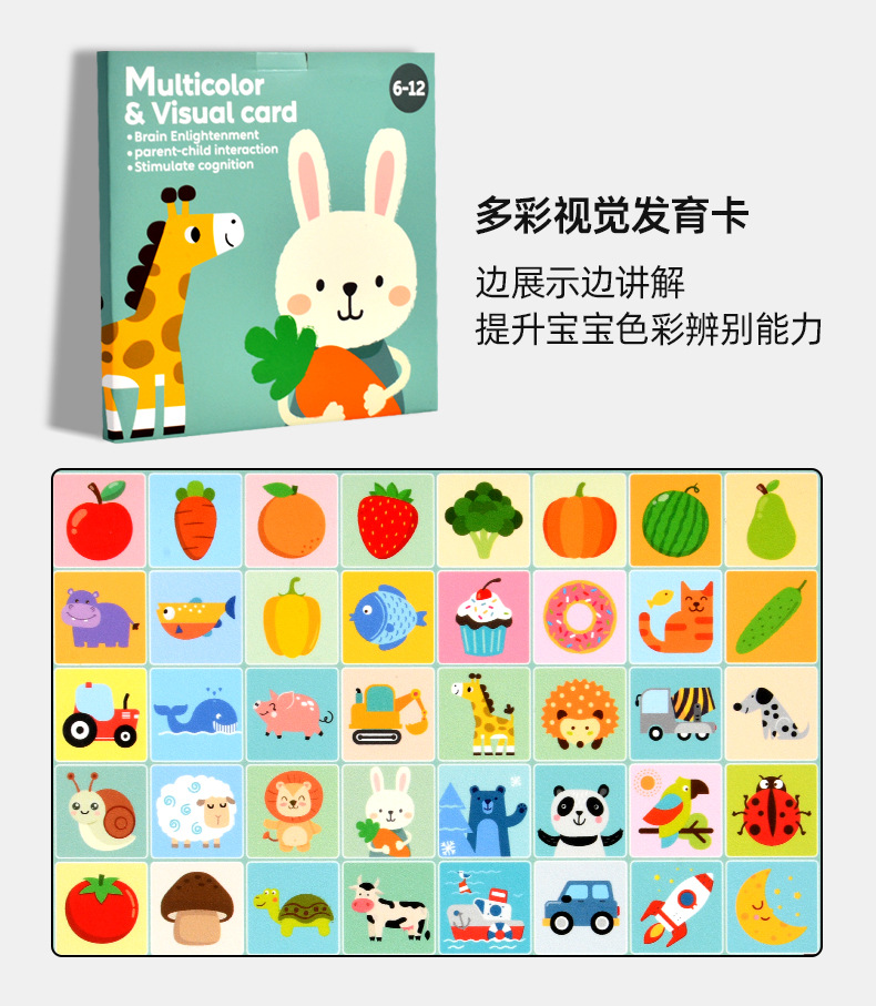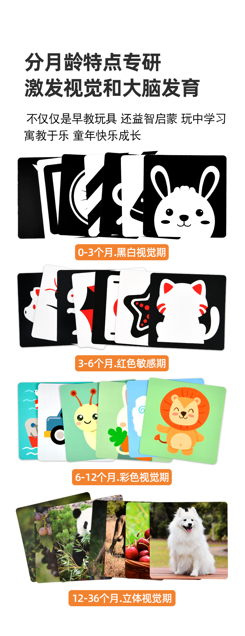 국경 간 유아 조기 교육 흑백 카드 0-36 개월 시각 카드 교육 장난감 시각 자극 카드 컬러 카드스토어 가기