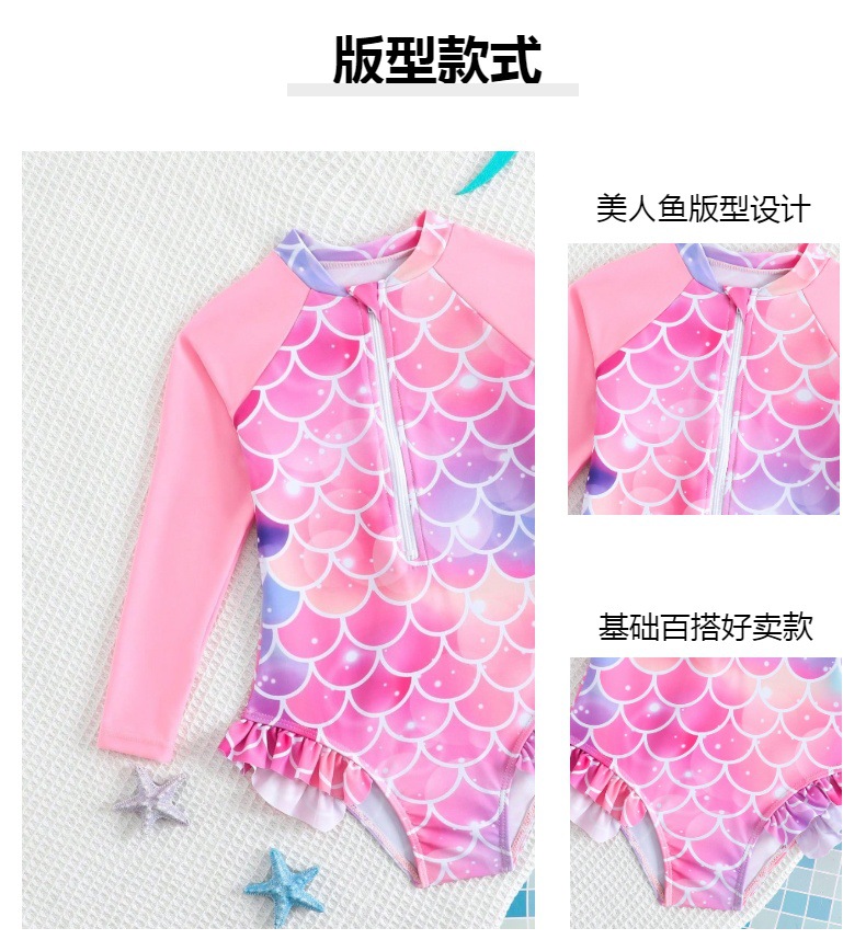 2025 대외 무역 인기 4-8 세 어린이 긴팔 수영복 소녀 귀여운 만화 스포츠 원피스 슈트스토어 가기