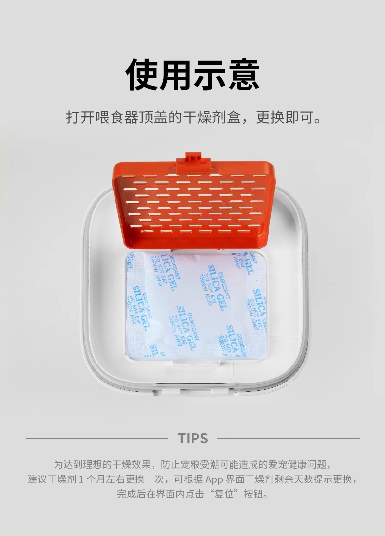 PETKIT 스마트 애완동물 급식기는 건조제와 방습 보존제를 사용하여 습기를 방지하고 신선도를 유지합니다.