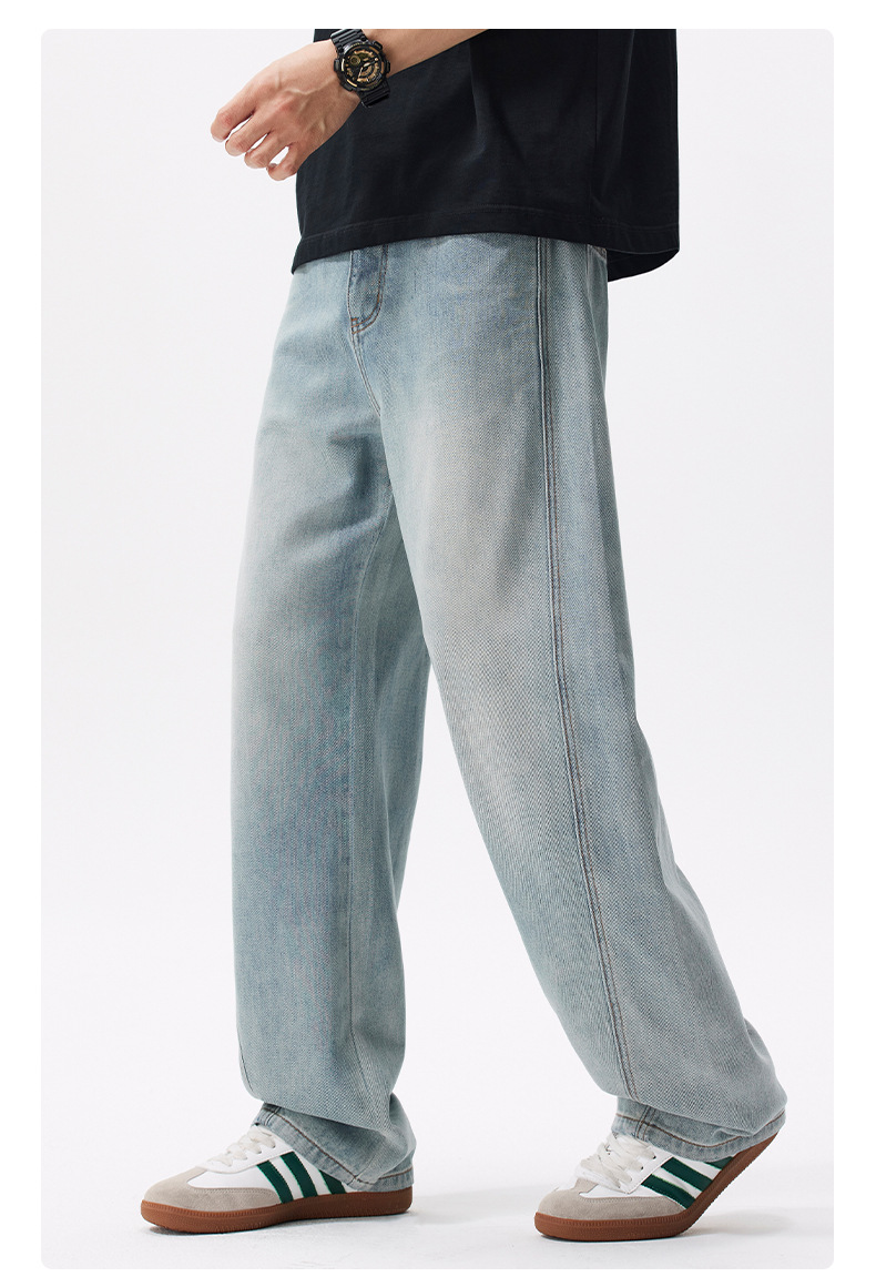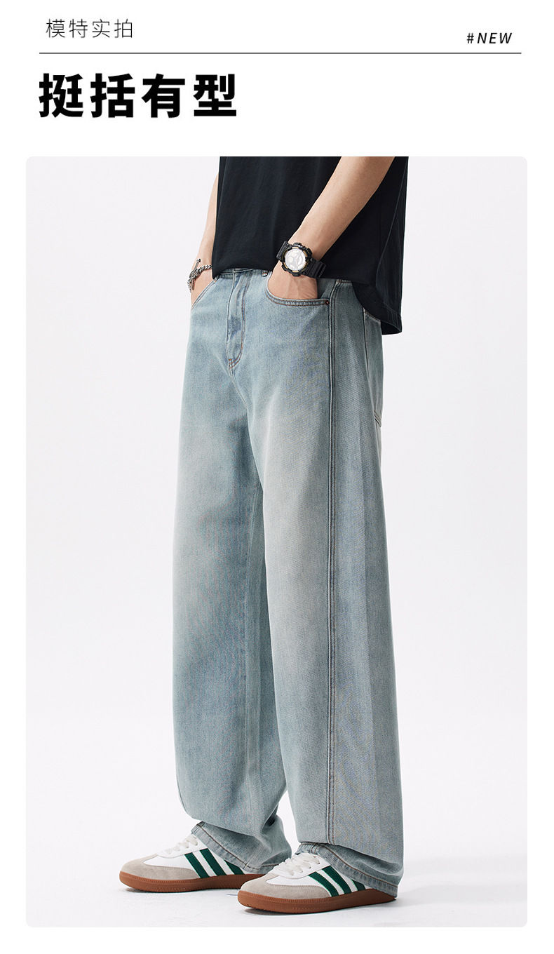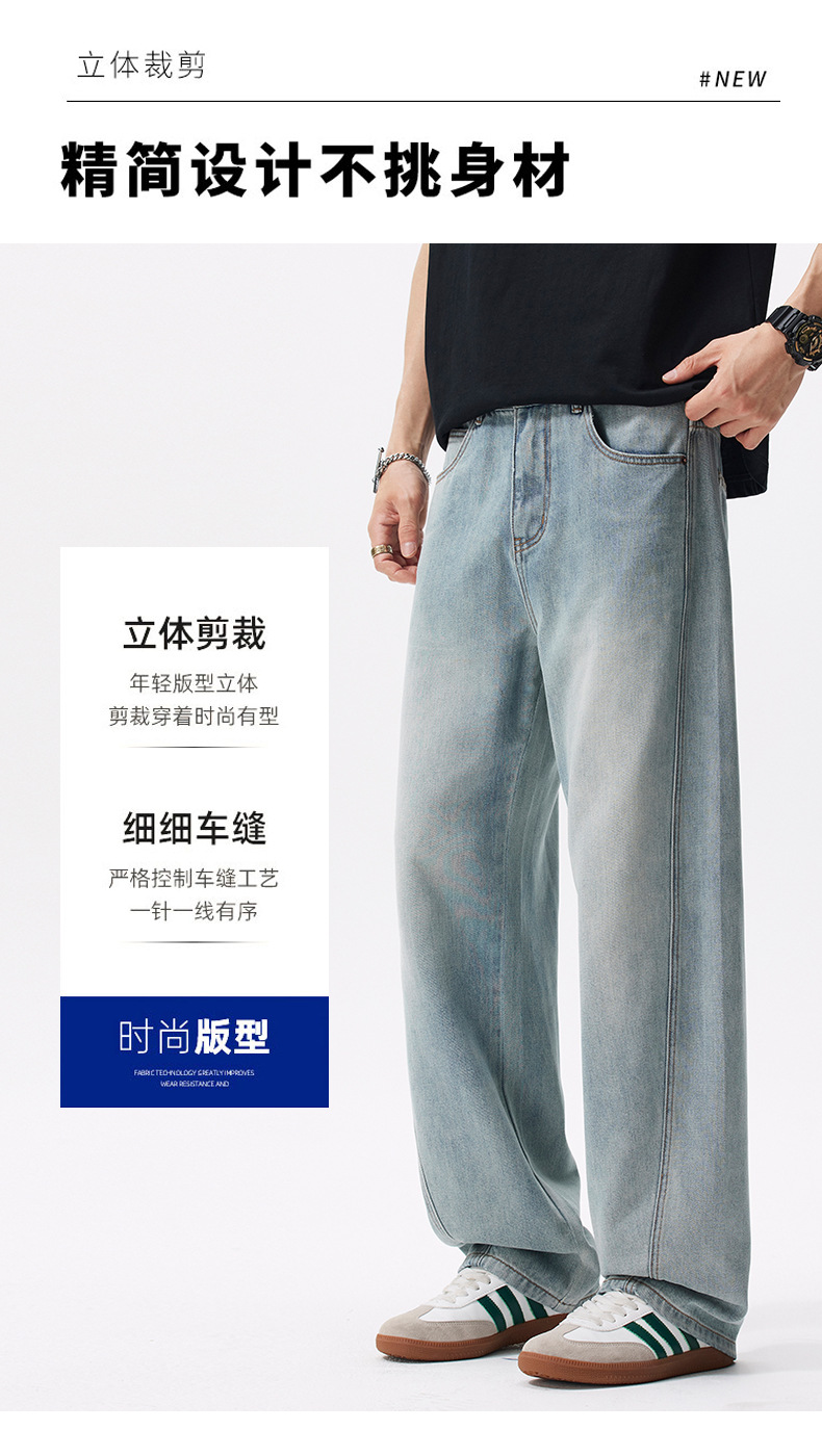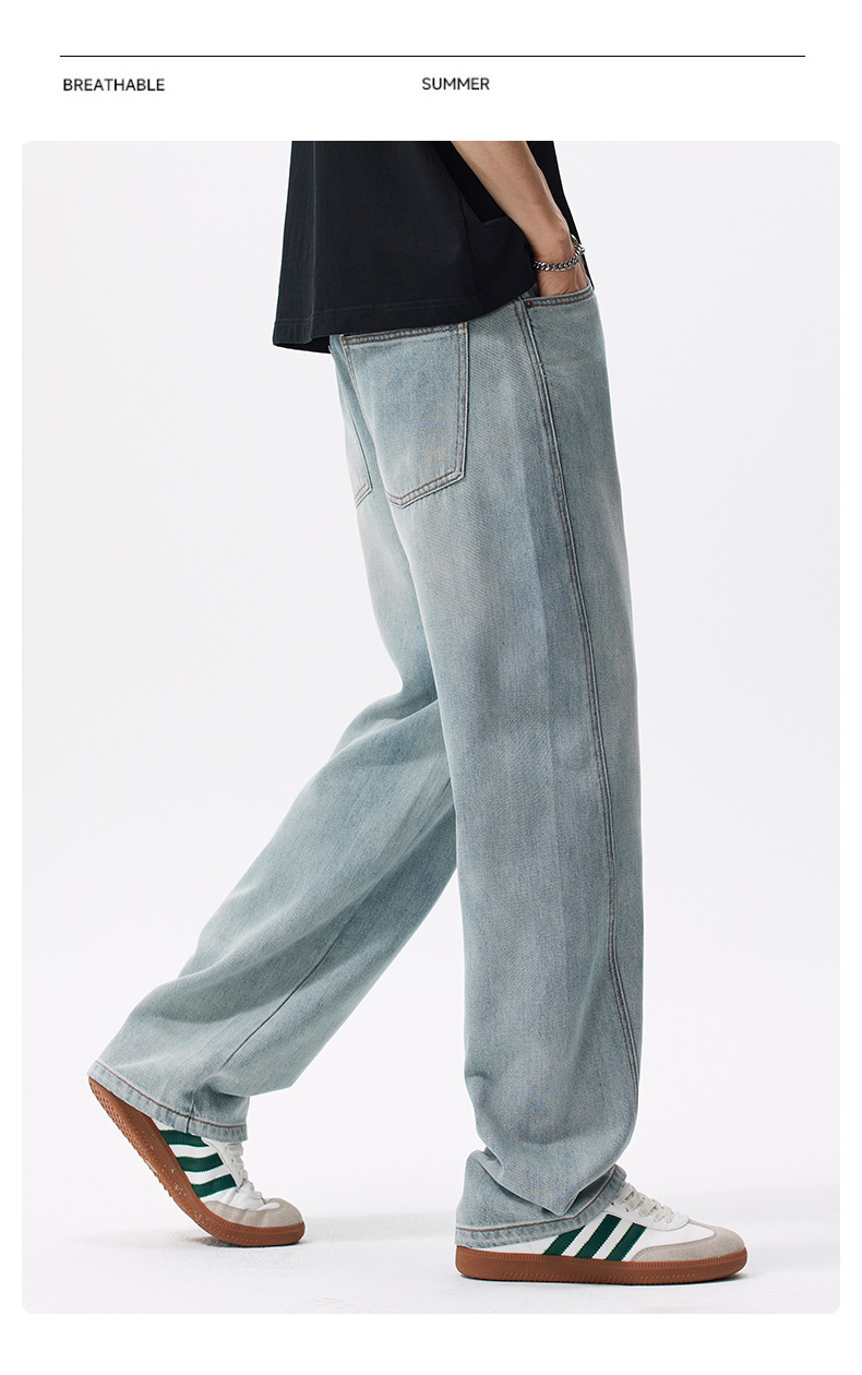 Muqiu Men's Wear | 얇은 텐셀 리오셀 채플린 청바지 남성용 아메리칸 루즈 드레이프 워싱 와이드 팬츠스토어 가기