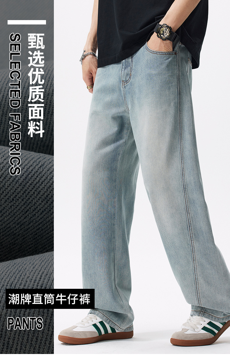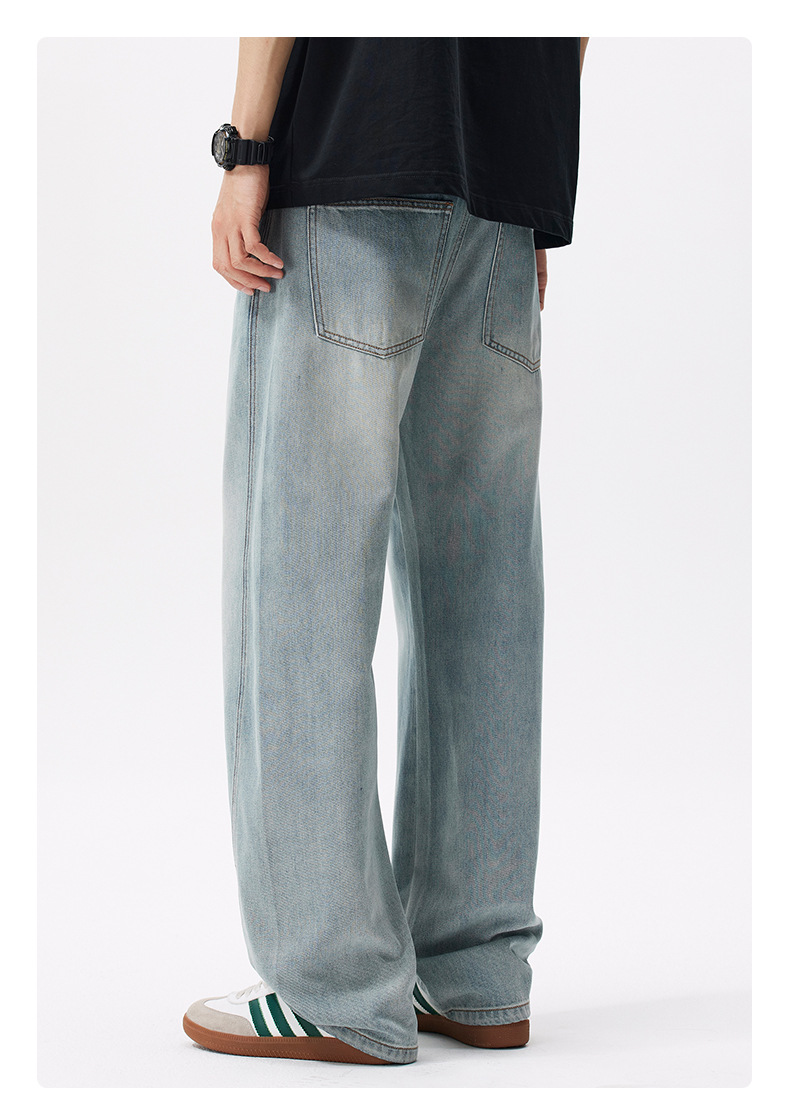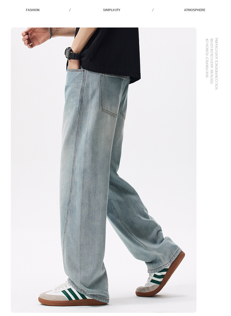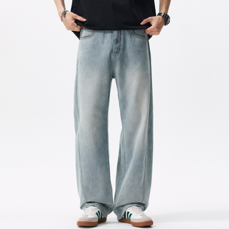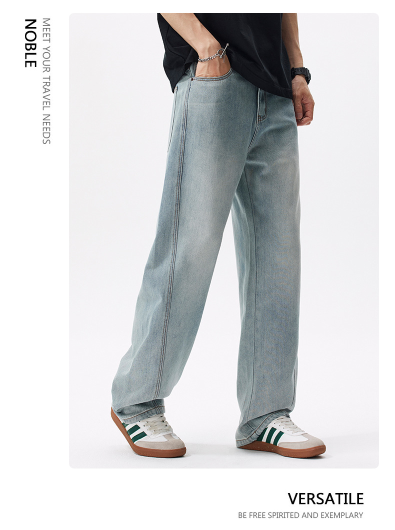Muqiu Men's Wear | 얇은 텐셀 리오셀 채플린 청바지 남성용 아메리칸 루즈 드레이프 워싱 와이드 팬츠스토어 가기