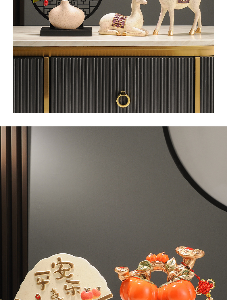 중국풍 평안과 기쁨 부채 모양 주류 진열장 장식품 거실 현관 TV장식장 가정 장식품 수지 공예품스토어 가기