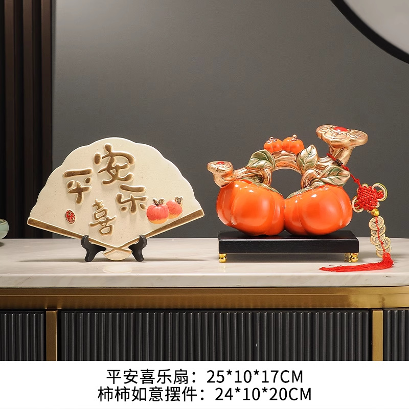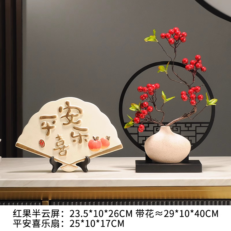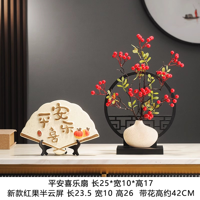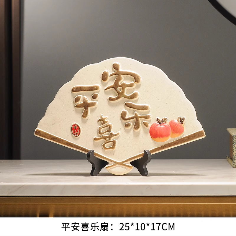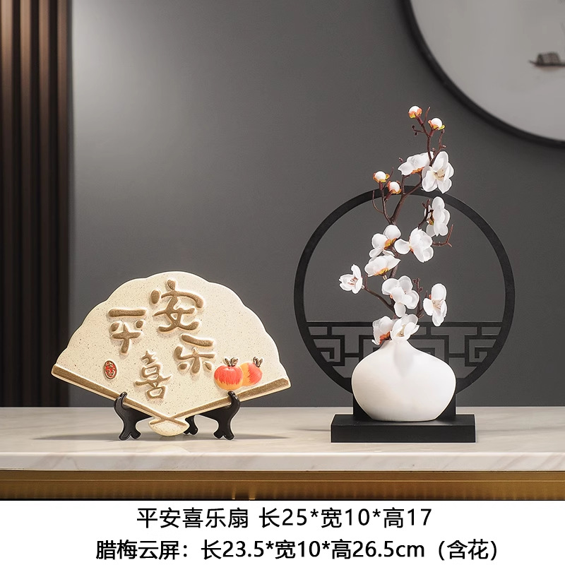 중국풍 평안과 기쁨 부채 모양 주류 진열장 장식품 거실 현관 TV장식장 가정 장식품 수지 공예품