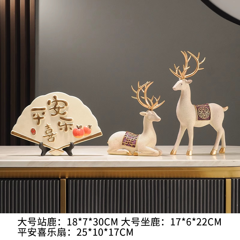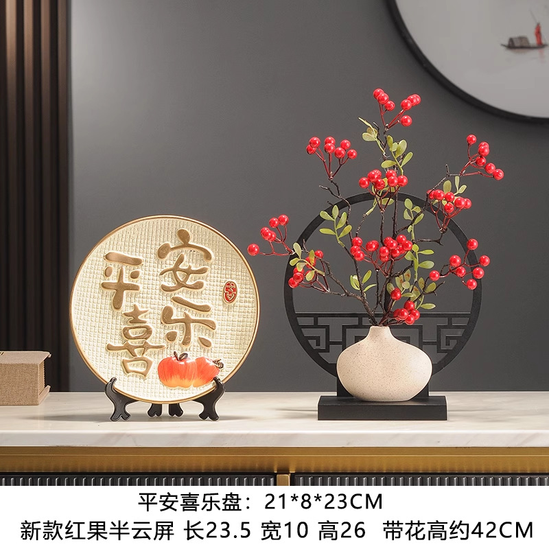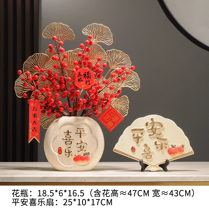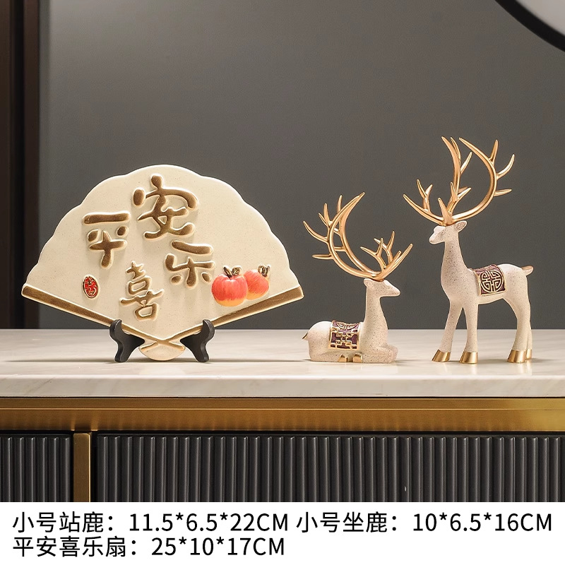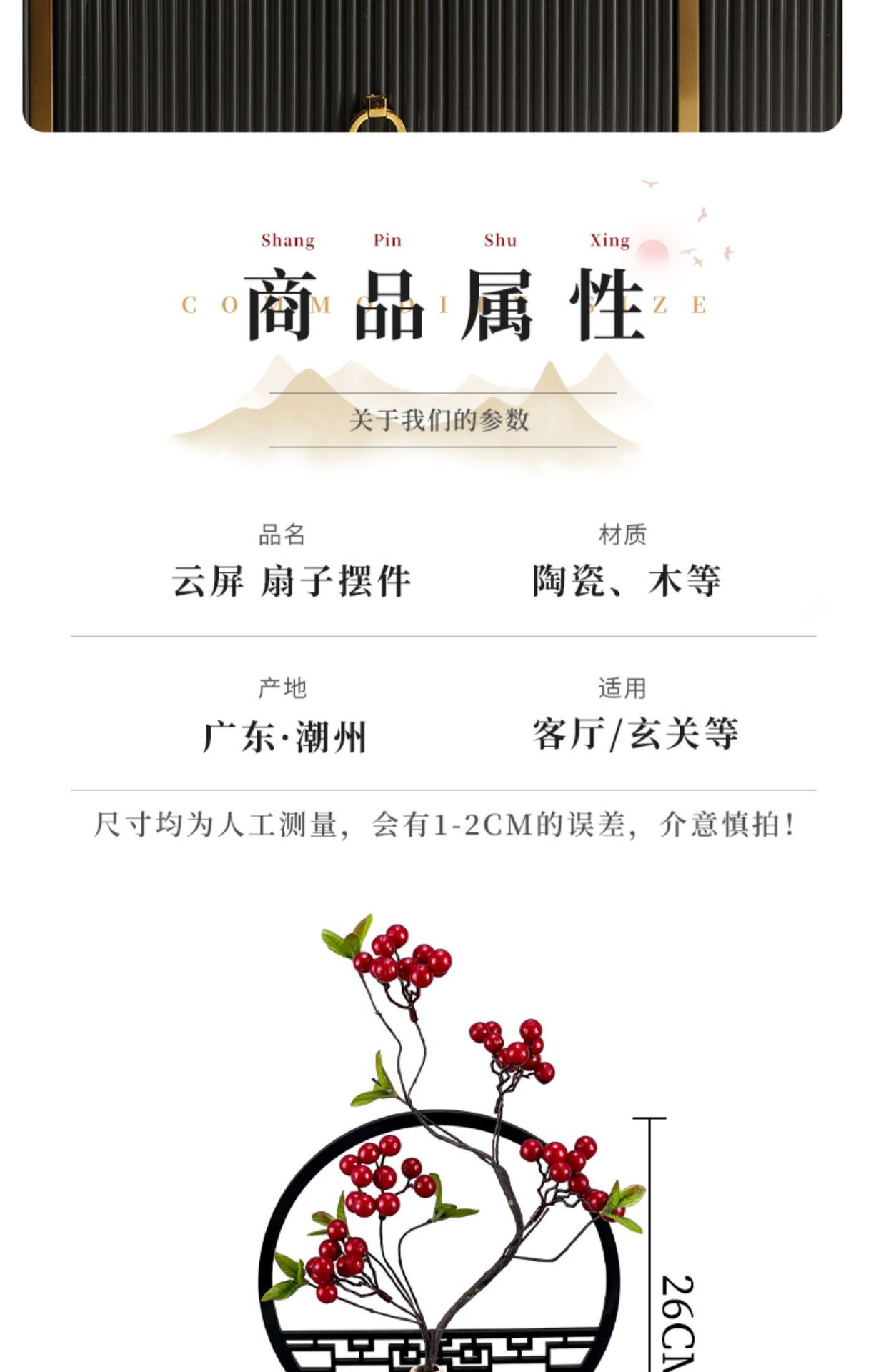 중국풍 평안과 기쁨 부채 모양 주류 진열장 장식품 거실 현관 TV장식장 가정 장식품 수지 공예품