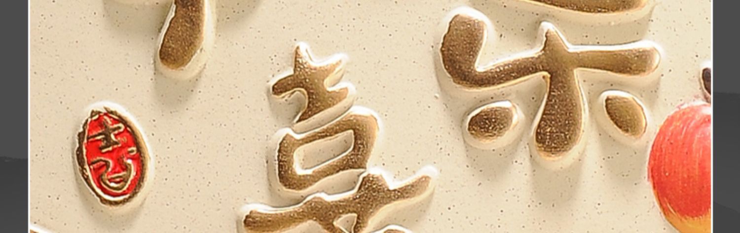 • 붉은 과일 반 구름 스크린 - 부채 모양 + 감 Ruyi 장식품