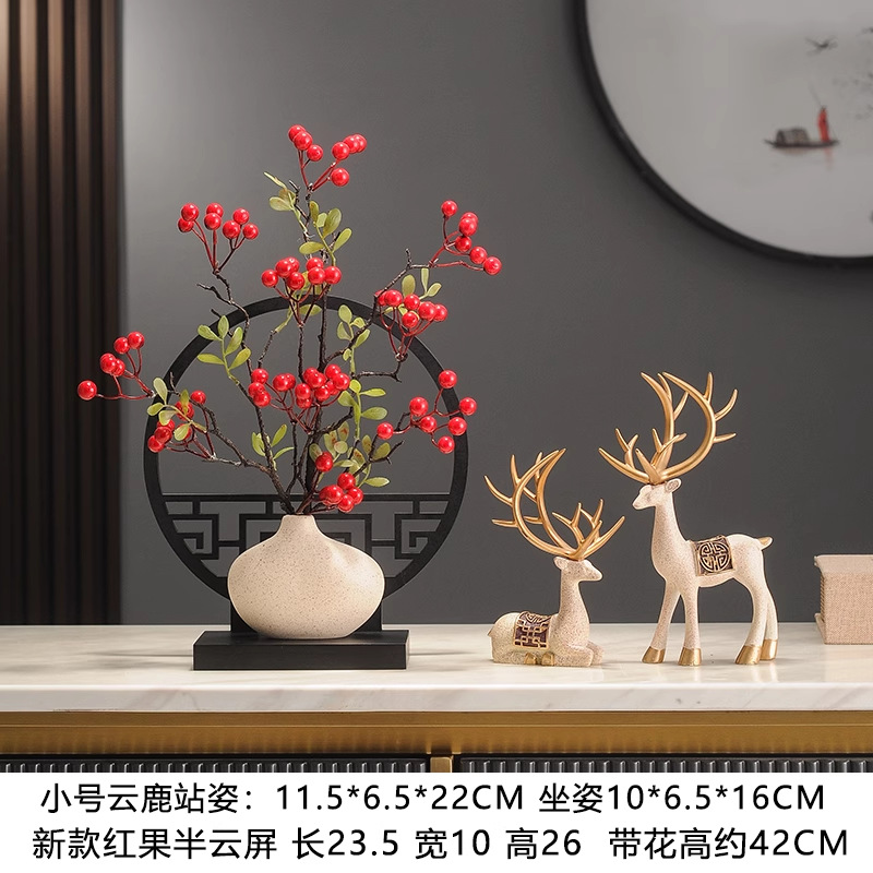 • 붉은 과일 반 구름 스크린 - 부채 모양 + 한 쌍의 사슴