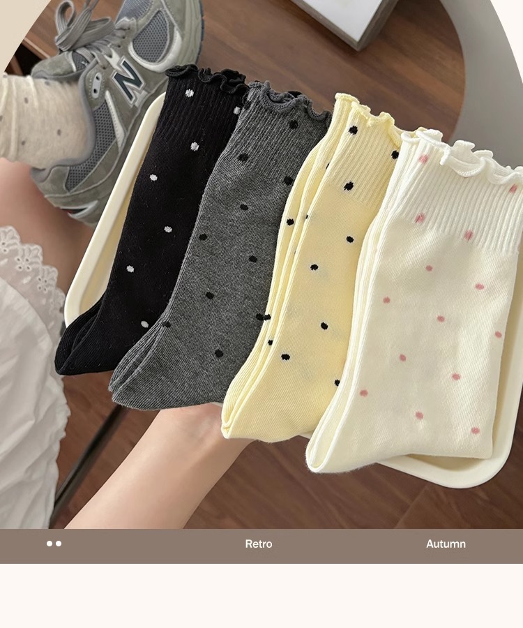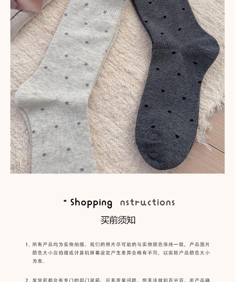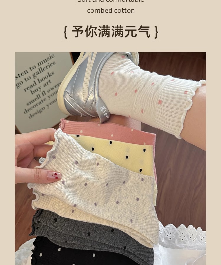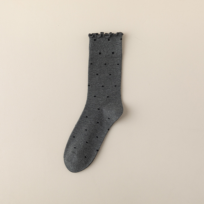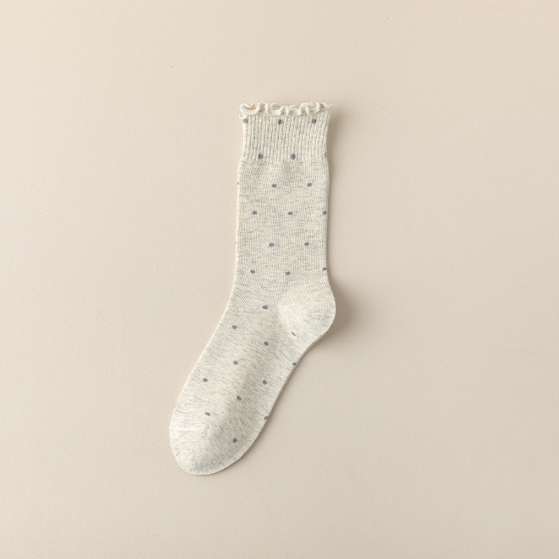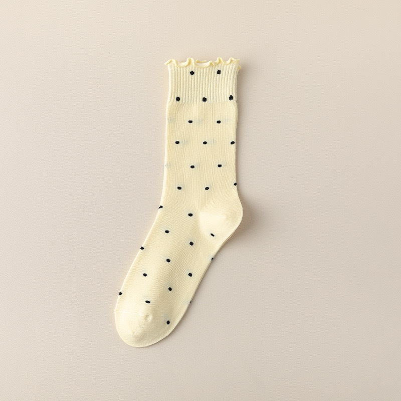 봄, 여름, 가을 여성용 종아리 중간 순면 양말, 일본식 다용도 폴카 도트 긴 양말, Zhujie스토어 가기