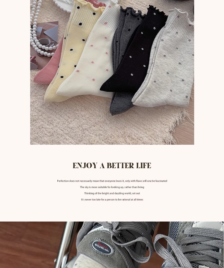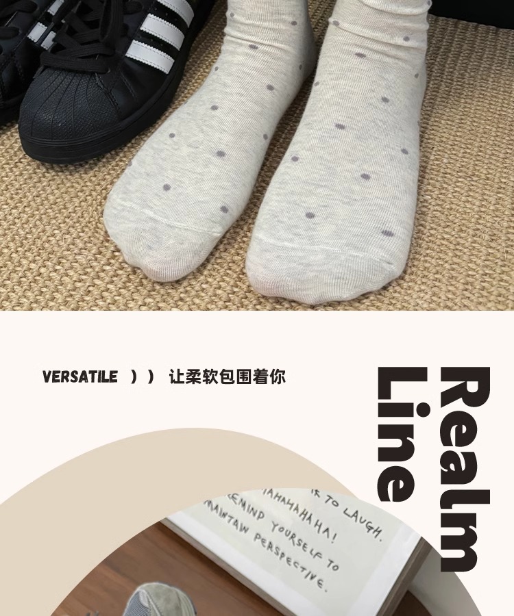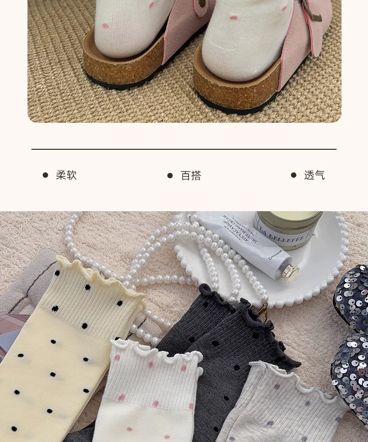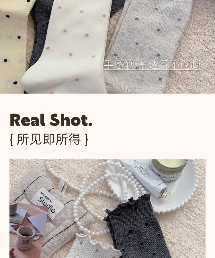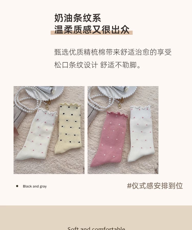 봄, 여름, 가을 여성용 종아리 중간 순면 양말, 일본식 다용도 폴카 도트 긴 양말, Zhujie스토어 가기
