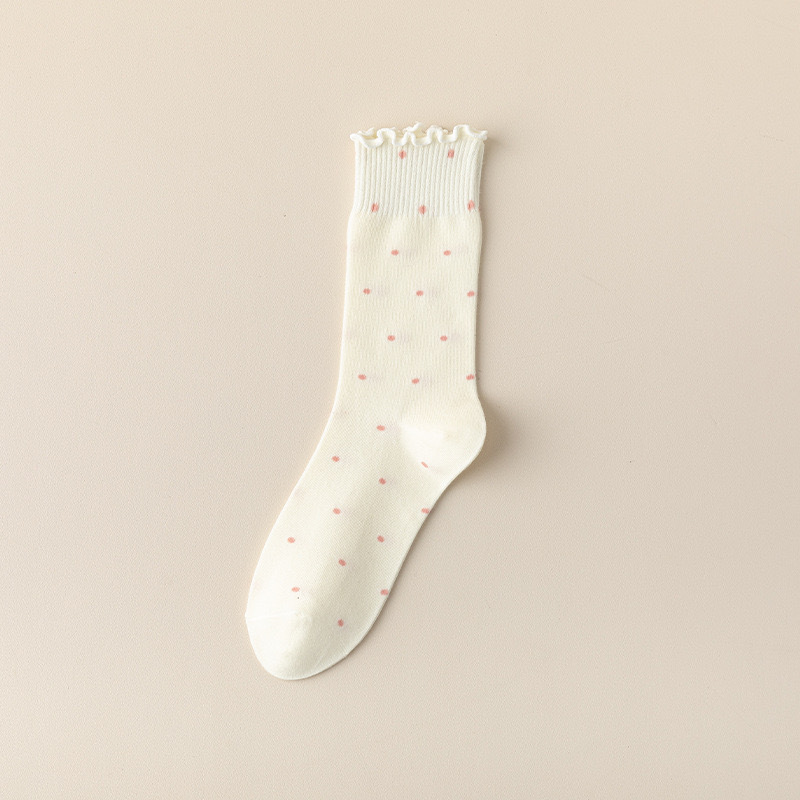 봄, 여름, 가을 여성용 종아리 중간 순면 양말, 일본식 다용도 폴카 도트 긴 양말, Zhujie