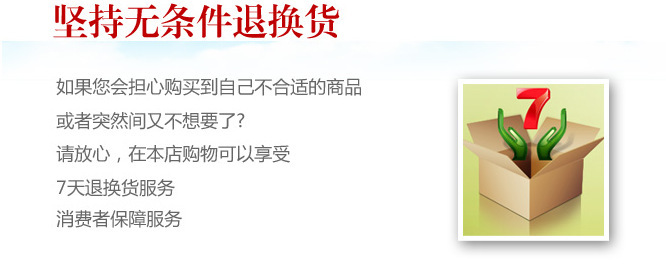 商品均享受七天退换(已购买运费险,请确保商品全新,不影响二次销售),您可以在7天内申请退换货,15天内申请换货,为了方便给您及时处理,退回时请先联系客服登记,如未登记的,本司拒绝签收,谢谢合作