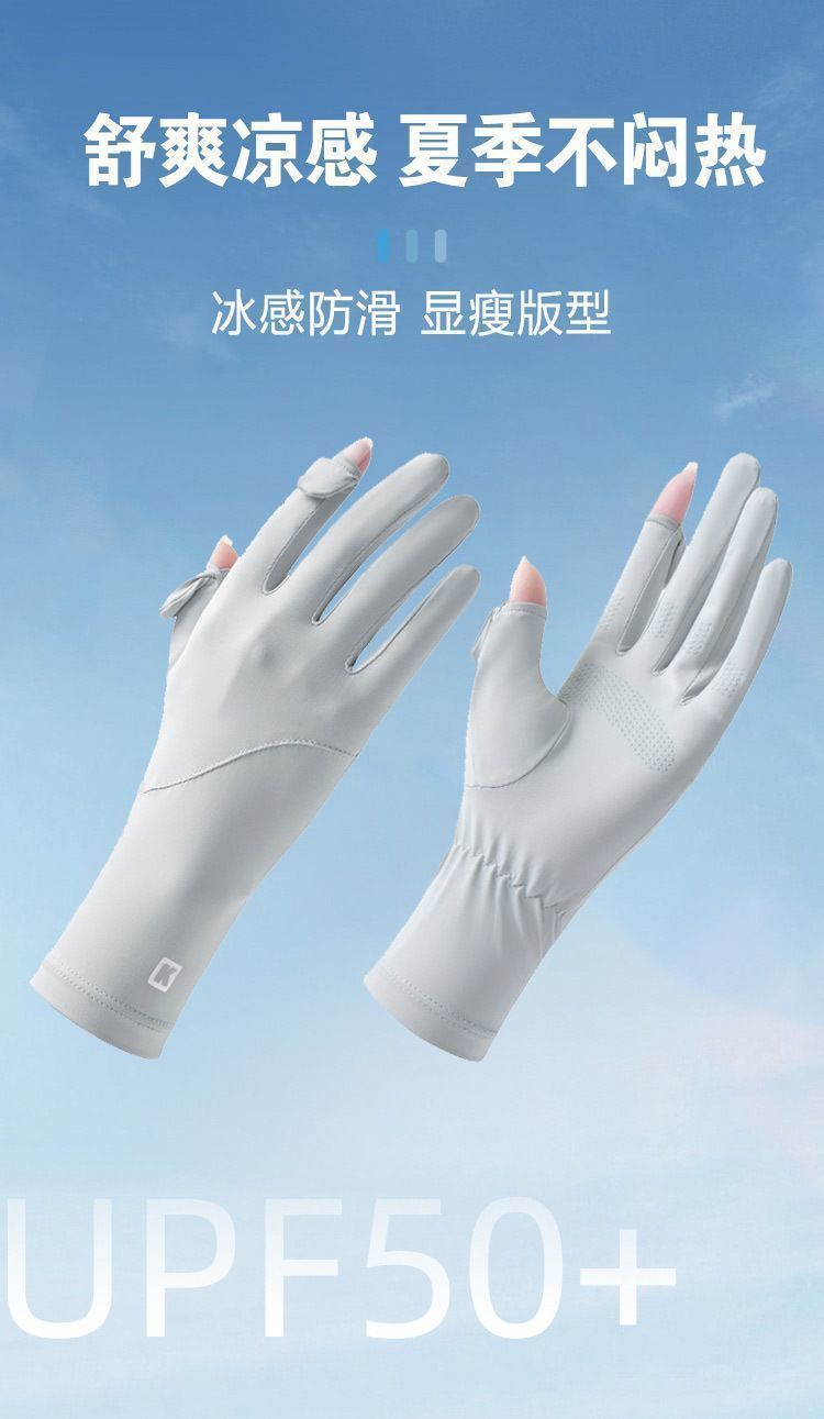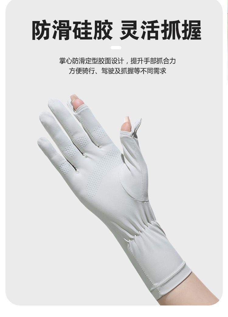 防晒手套女夏季冰丝防紫外线薄款透气可触屏手套开车户外骑行手套