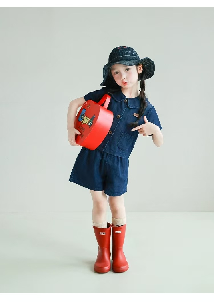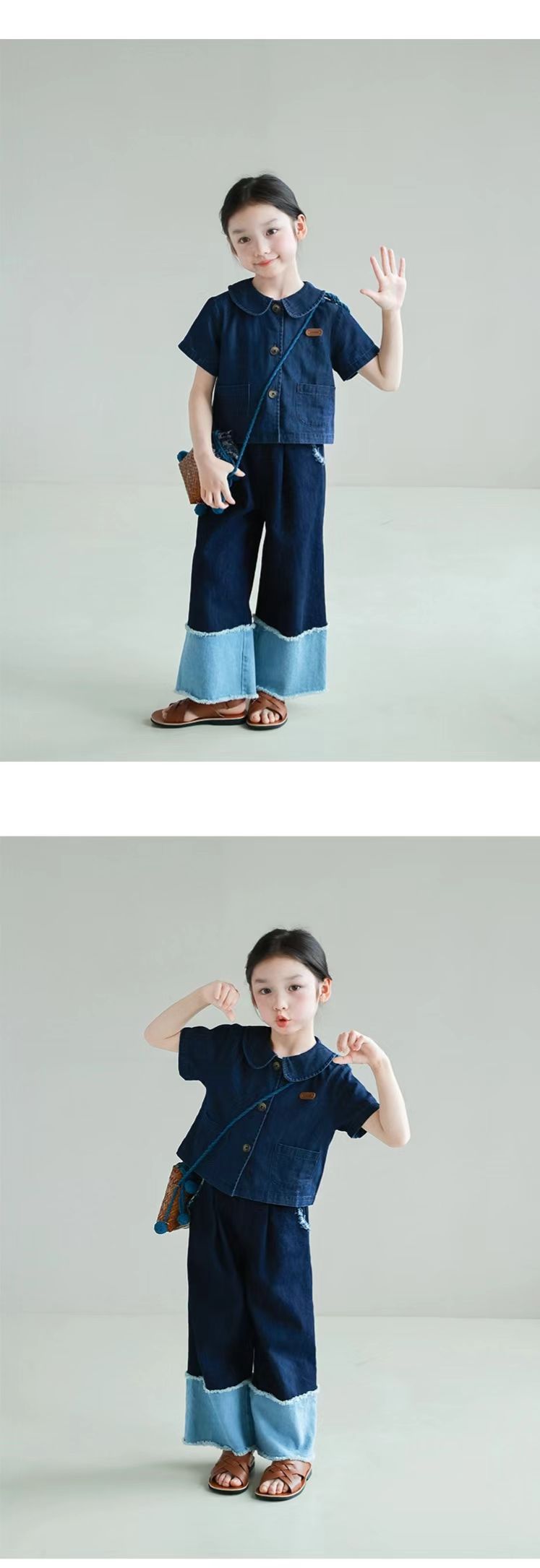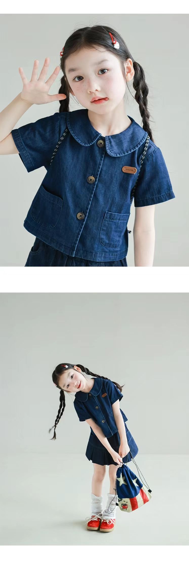 한국 아동복 여아 2025 여름 신작 패셔너블 작은 라펠 반팔 탑 플리츠 스커트 대학 스타일 정장 여름스토어 가기