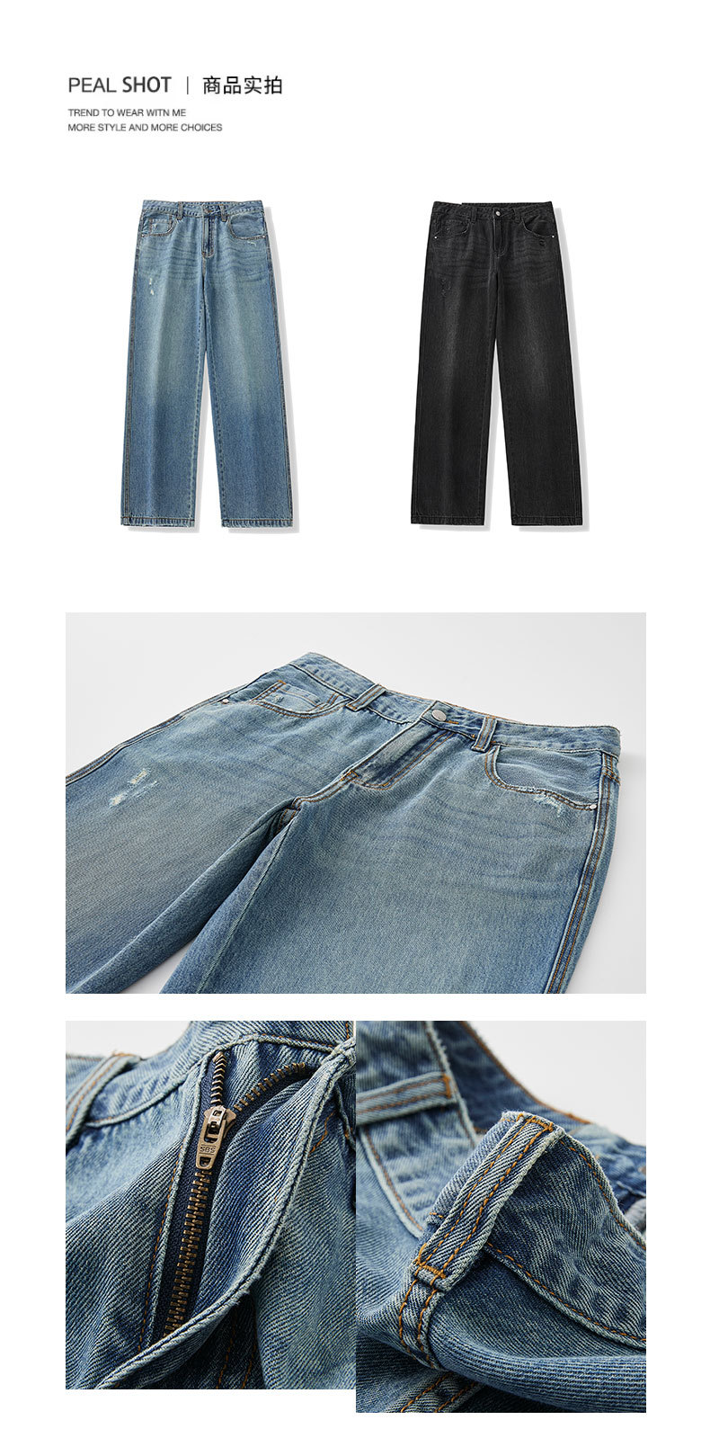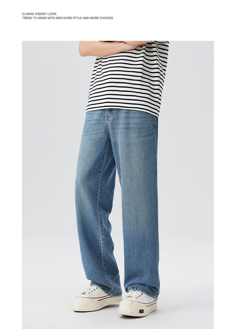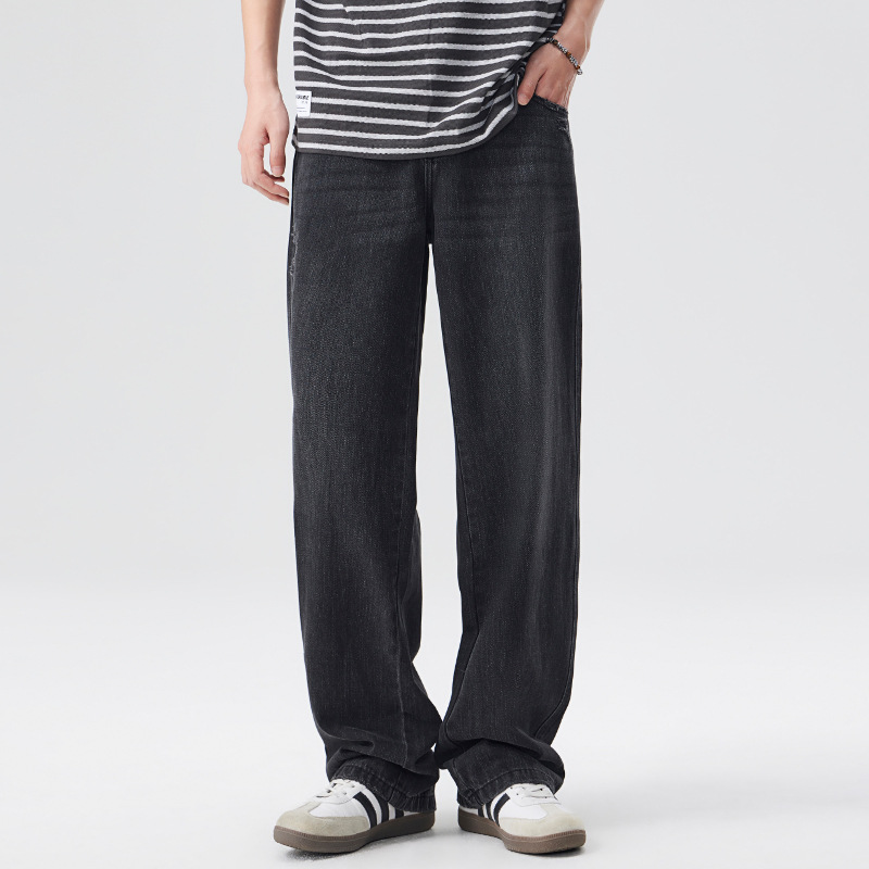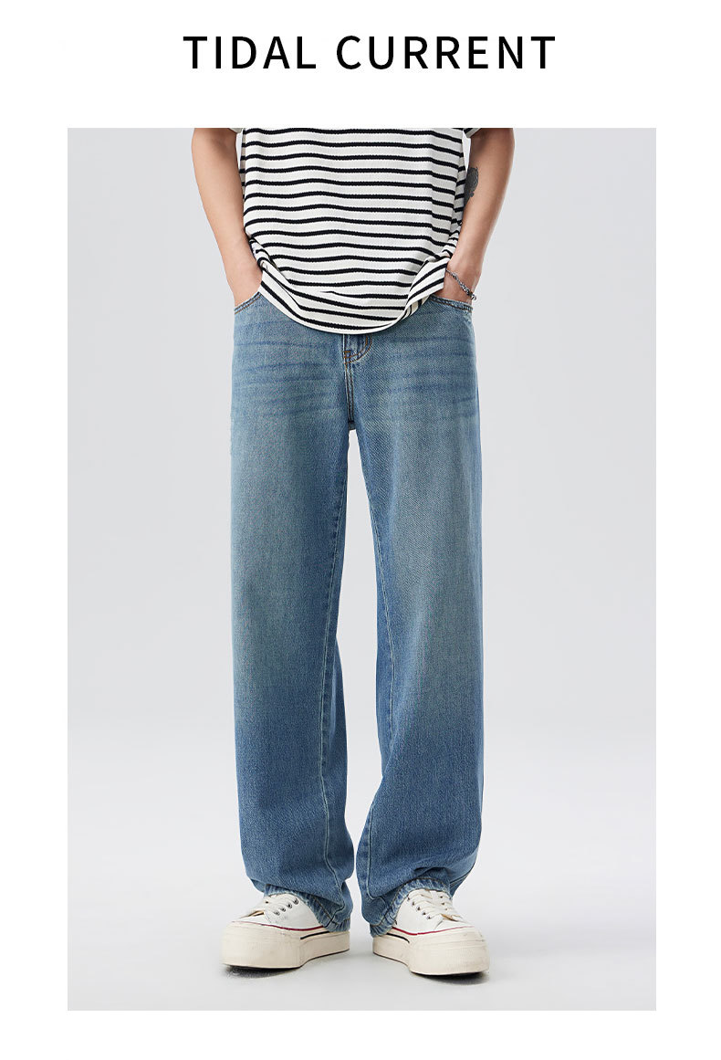 Muqiu 남성복 | Lyocell Tencel 찢어진 청바지 남성용 미국 여름 얇은 드레이프 루즈 스트레이트 바지스토어 가기