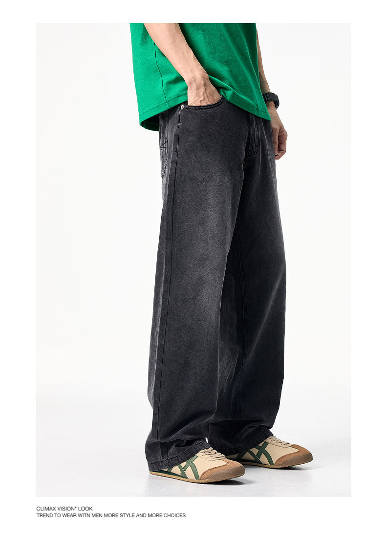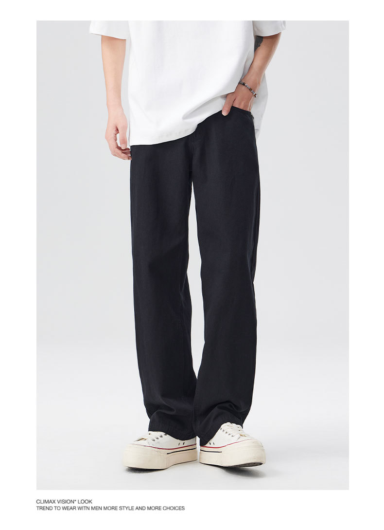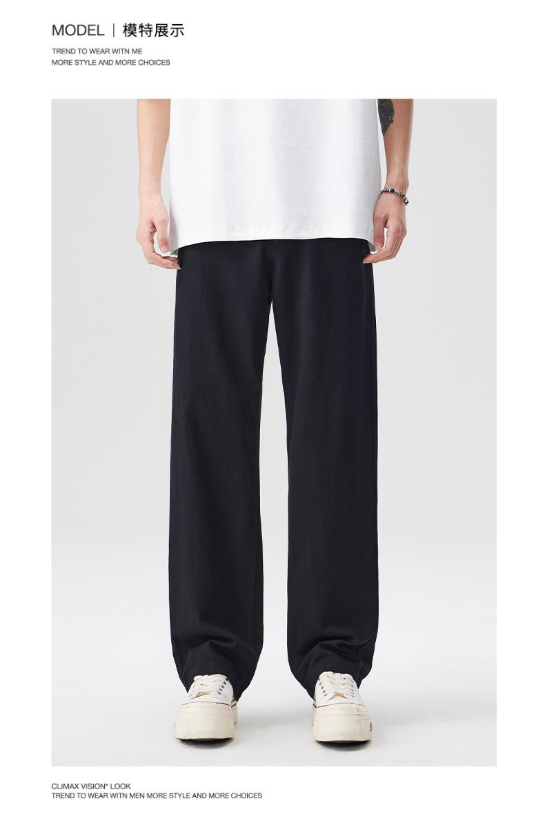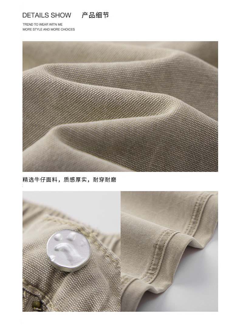 Muqiu 남성복 | 여름 아메리칸 레트로 워싱 비드 캔버스 카키 청바지 남성 루즈 스트레이트 캐주얼 바지스토어 가기