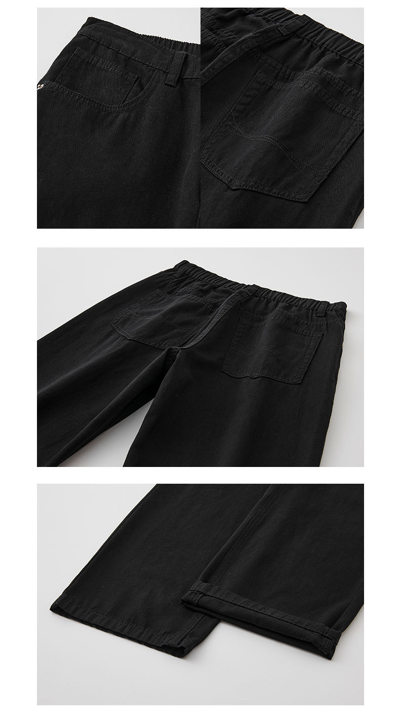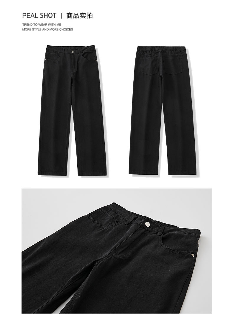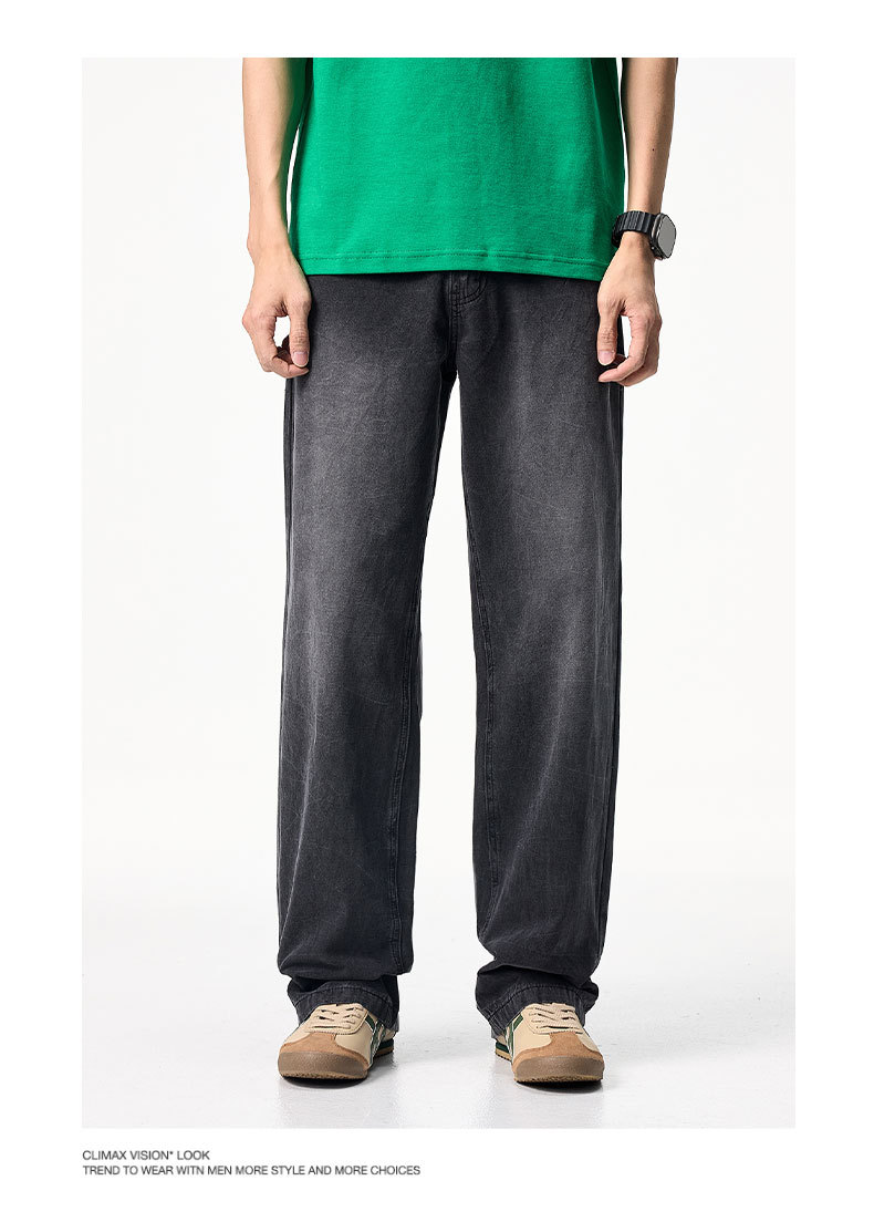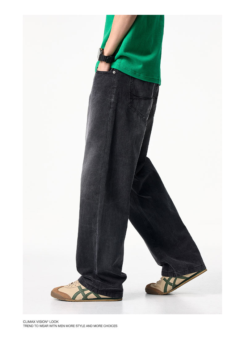 Muqiu 남성복 | 여름 아메리칸 레트로 워싱 비드 캔버스 카키 청바지 남성 루즈 스트레이트 캐주얼 바지스토어 가기