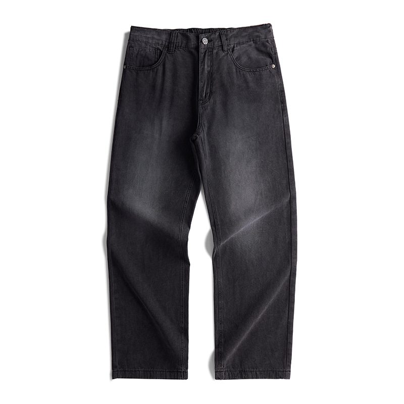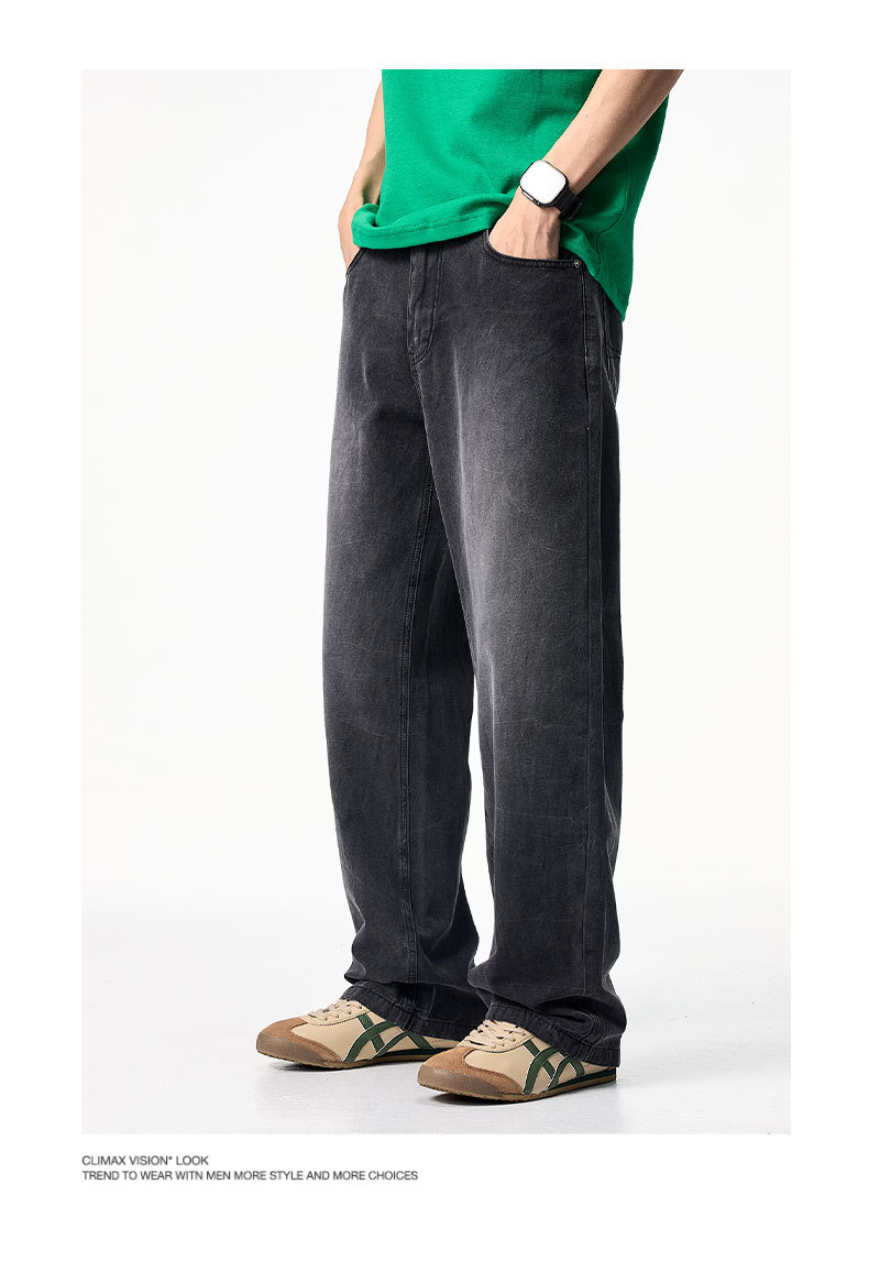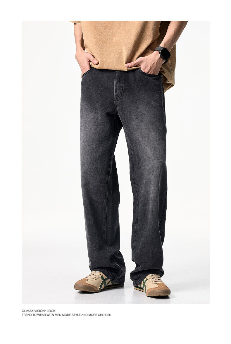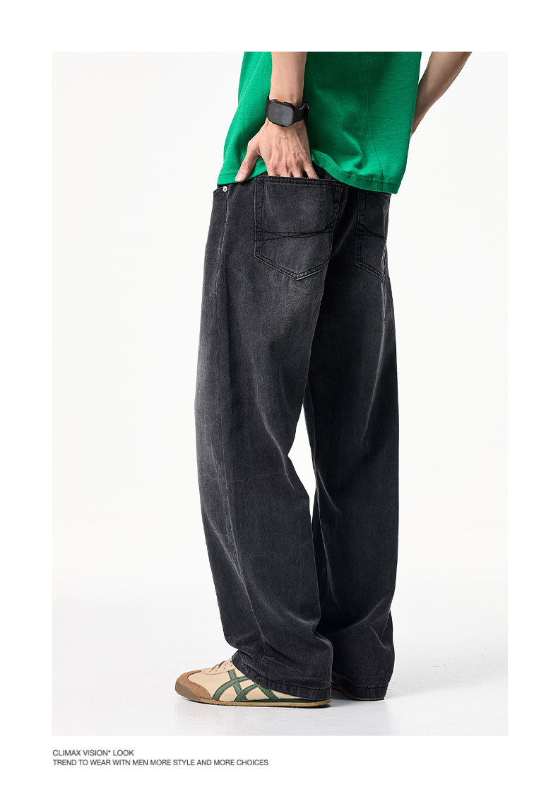 Muqiu 남성복 | 여름 아메리칸 레트로 워싱 비드 캔버스 카키 청바지 남성 루즈 스트레이트 캐주얼 바지