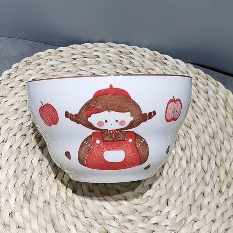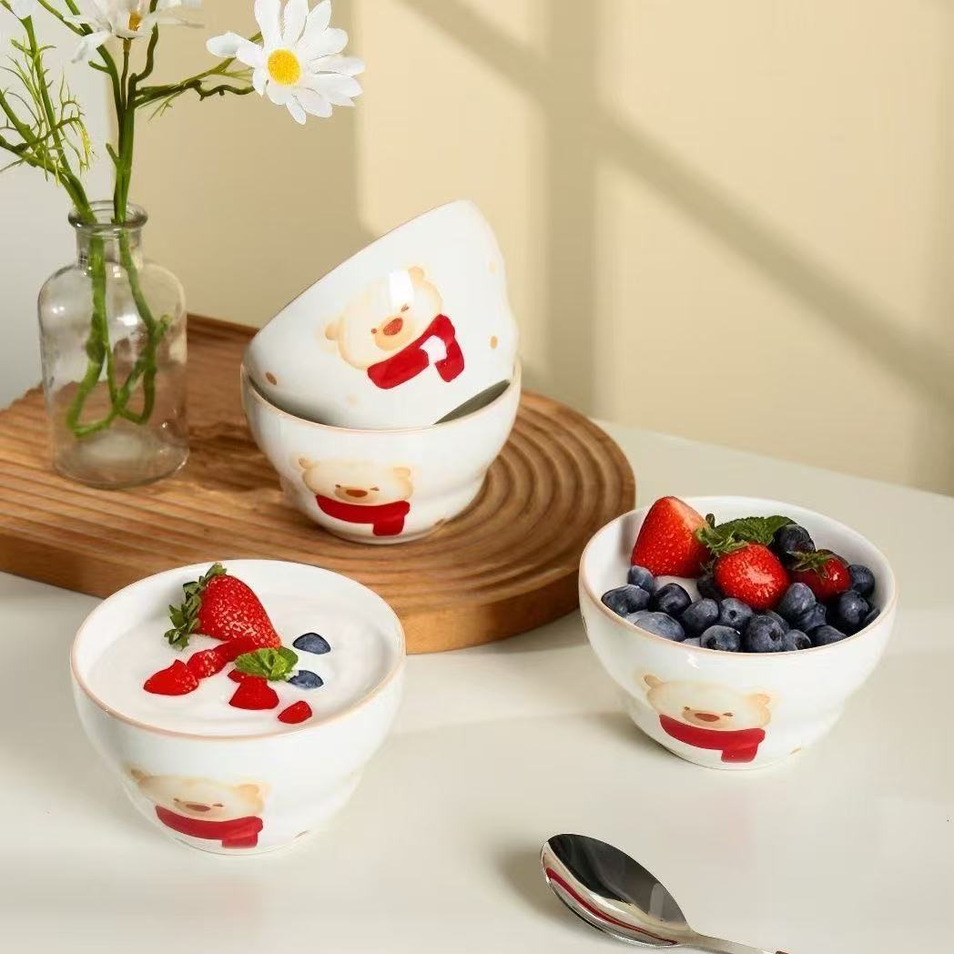 Underglaze 컬러 세라믹 그릇 5inch 조롱박 그릇 밥 그릇 세라믹 요구르트 그릇 가정용 귀여운 크리 에이 티브 만화 그릇스토어 가기