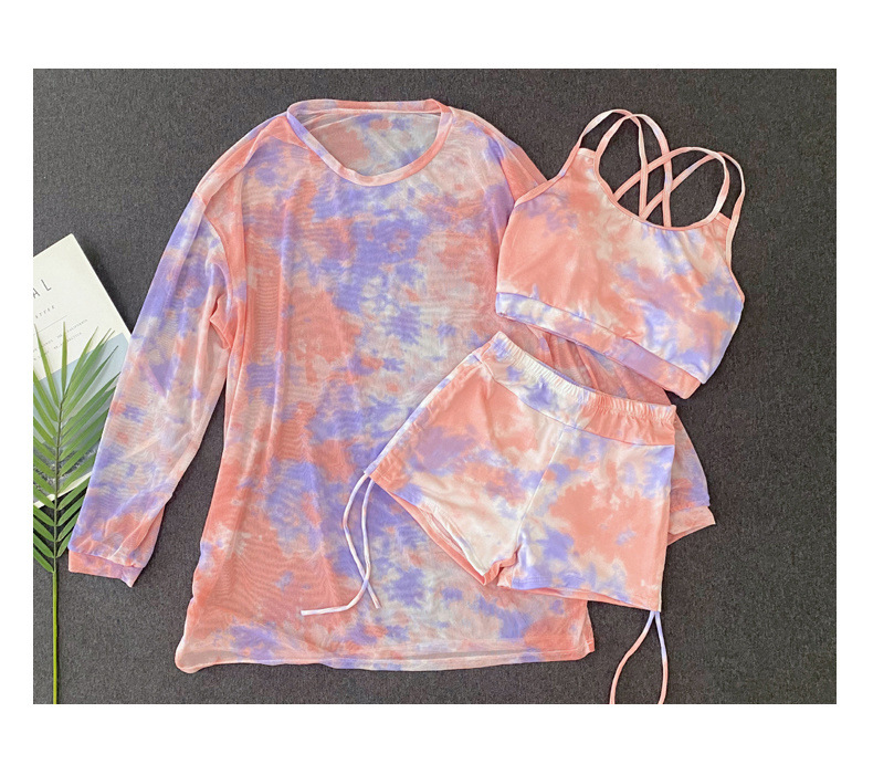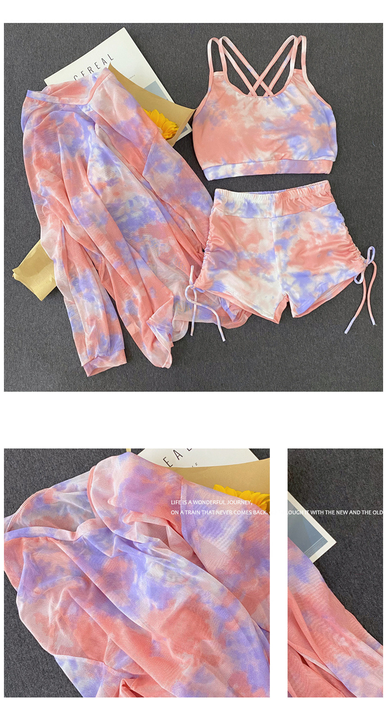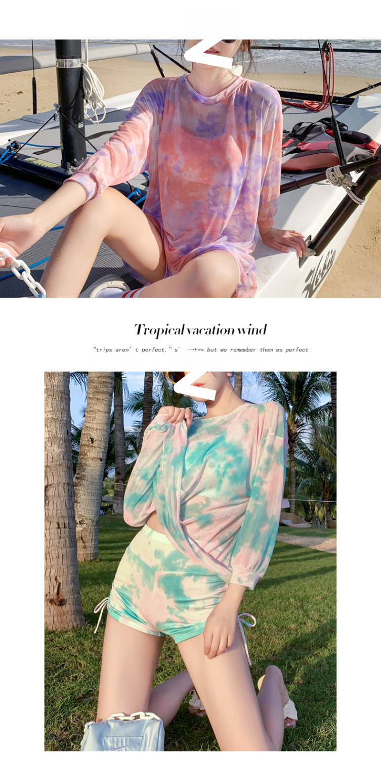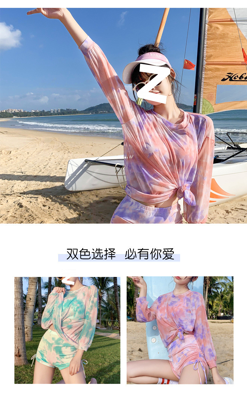 소녀들을 위한 캐주얼 스포츠 스타일 수영복, 3피스 긴팔 자외선 차단 블라우스, 작은 가슴 분할 스타일, 학생 소녀, 보수적스토어 가기