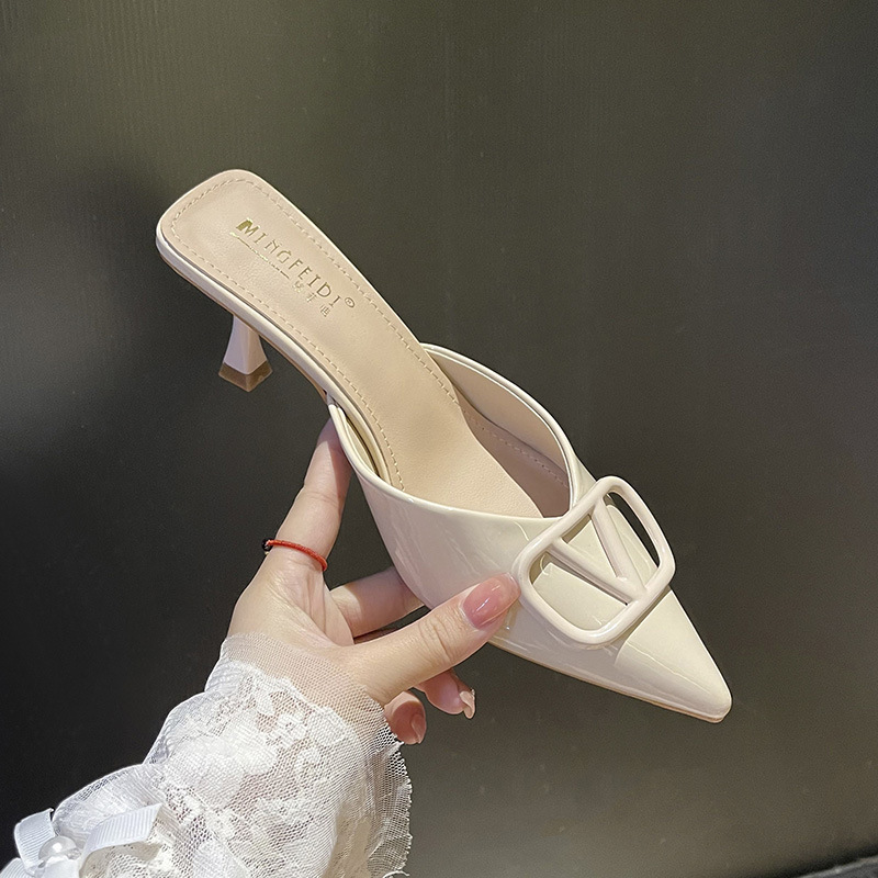 2025년 신작 여름 여성용 인터넷 연예인 슬리퍼, V버튼 뾰족코 여성화, 샌들, 여성용 발가락 반슬리퍼, 하이힐, 스틸레토 힐스토어 가기