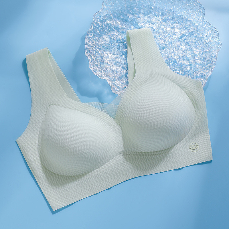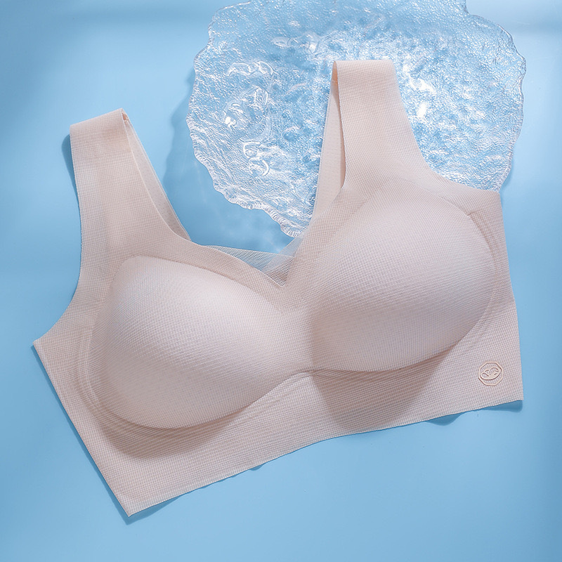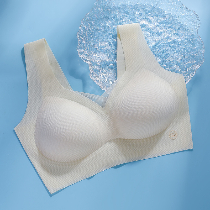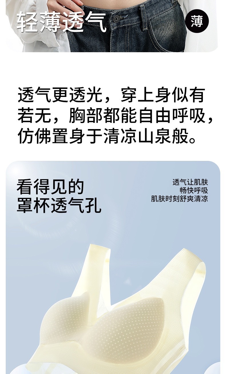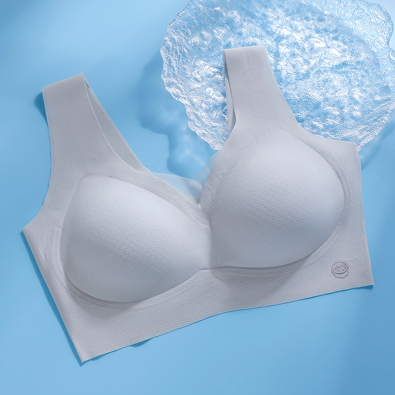 2025 여름 얇은 얼음 실크 원활한 속옷 여성용 와이어 프리 얇은 통기성 큰 가슴 작은 푸시 업 스포츠 브라스토어 가기