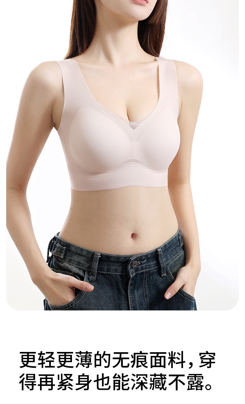 2025 여름 얇은 얼음 실크 원활한 속옷 여성용 와이어 프리 얇은 통기성 큰 가슴 작은 푸시 업 스포츠 브라