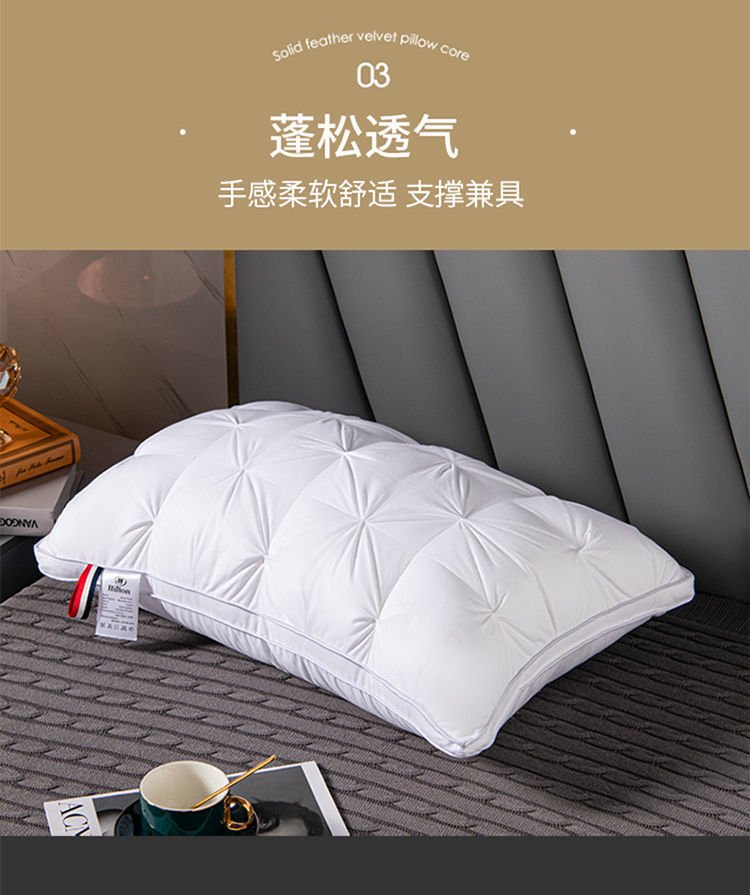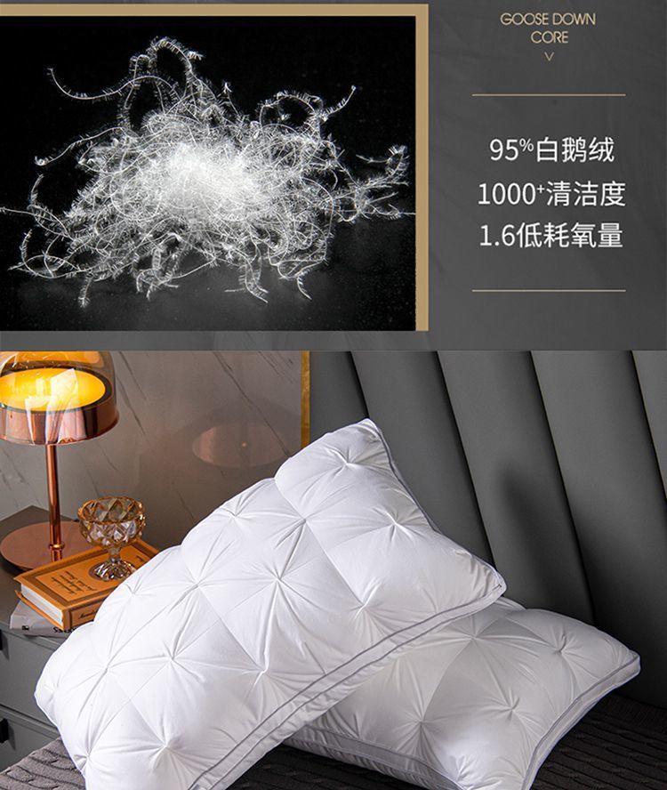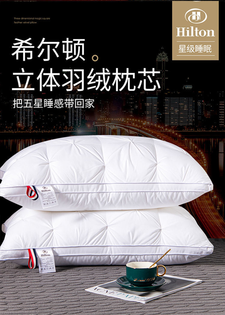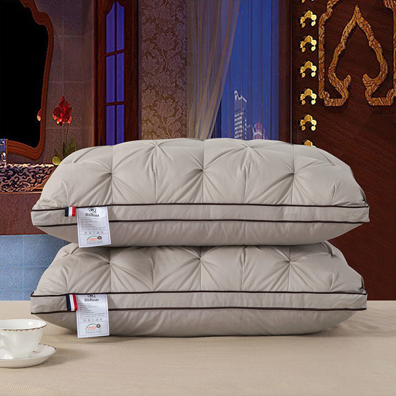 힐튼 다운 베개, 화이트 구스 다운 실크 베개 코어, 5개의 호텔 베개 코어, 한 쌍, 고급, 무너지지 않고 매우 부드러움